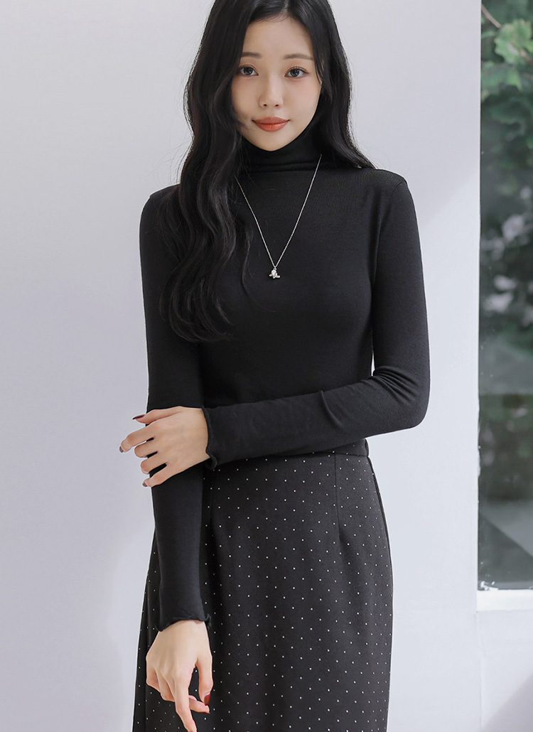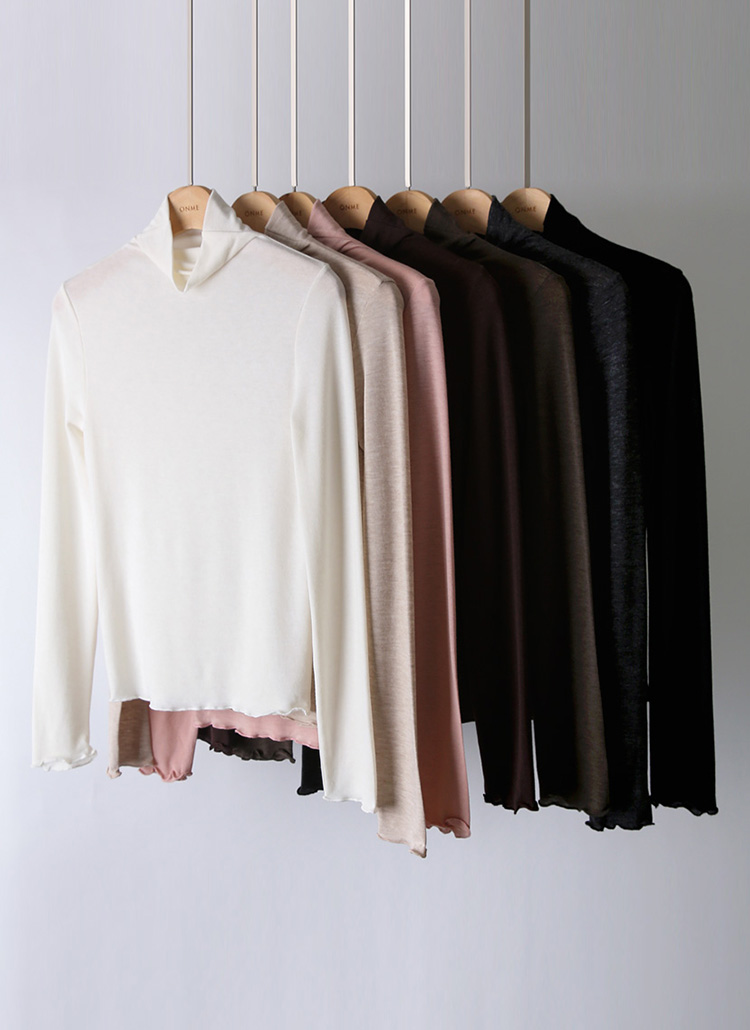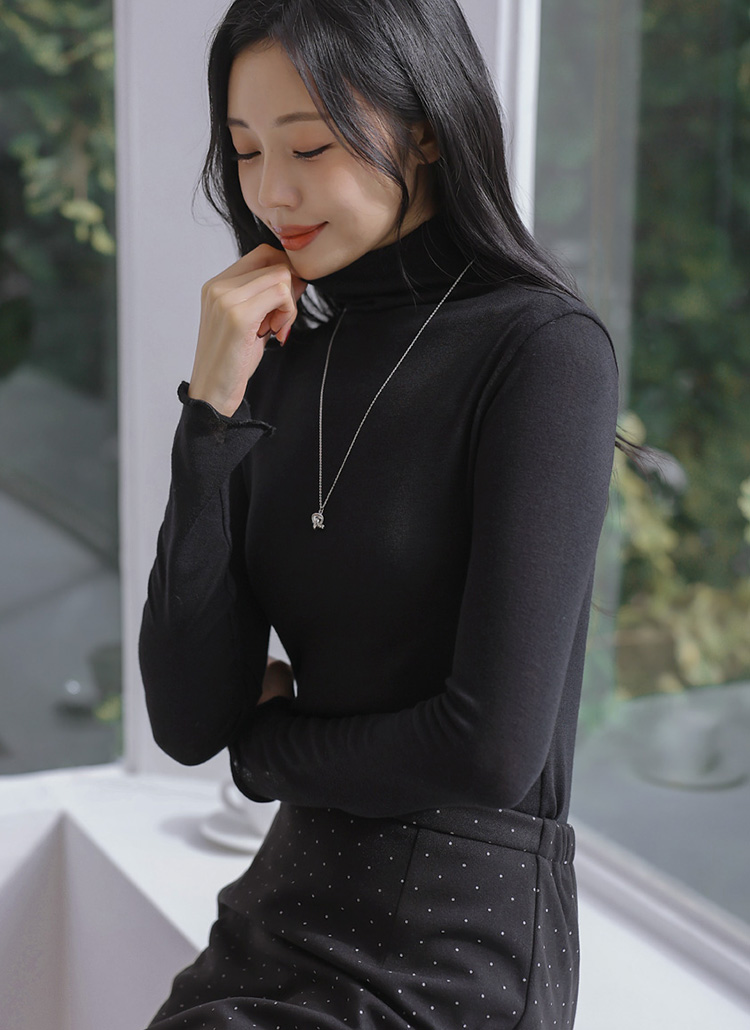 여리여리한 무드가 돋보이는 러플 폴라 티셔츠예요 :)