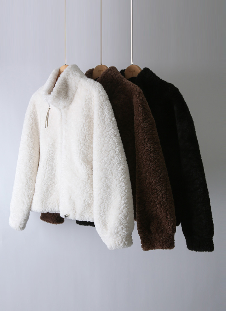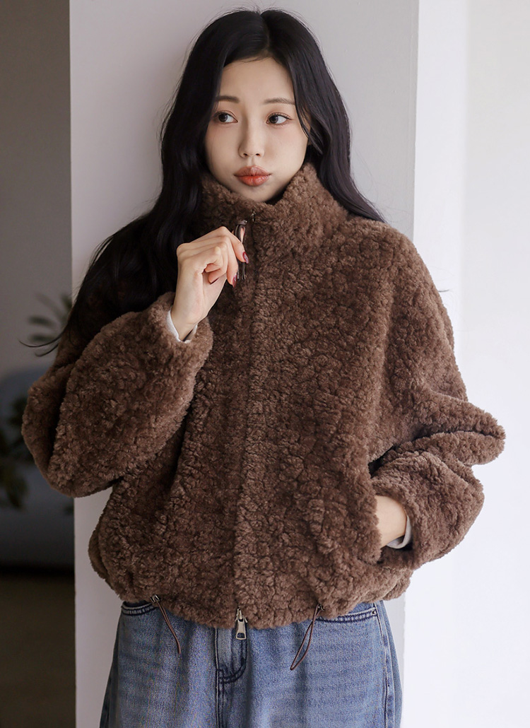 👑[Theonme] 보아트 뽀글이 퍼 세미크롭 루즈핏 집업 자켓 [브라운]👑