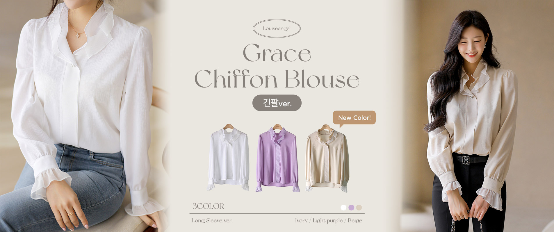 [루이스엔젤] 퓨어크림 리본SET 러플넥 페미닌라인 블라우스