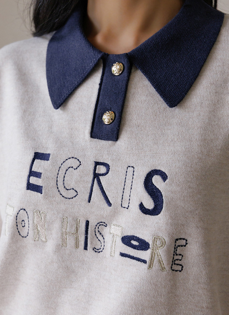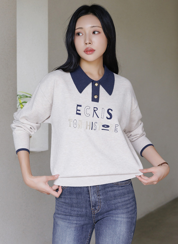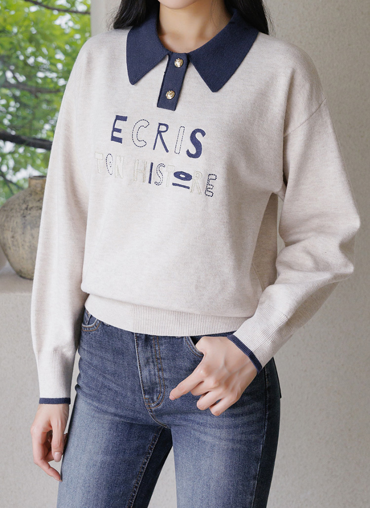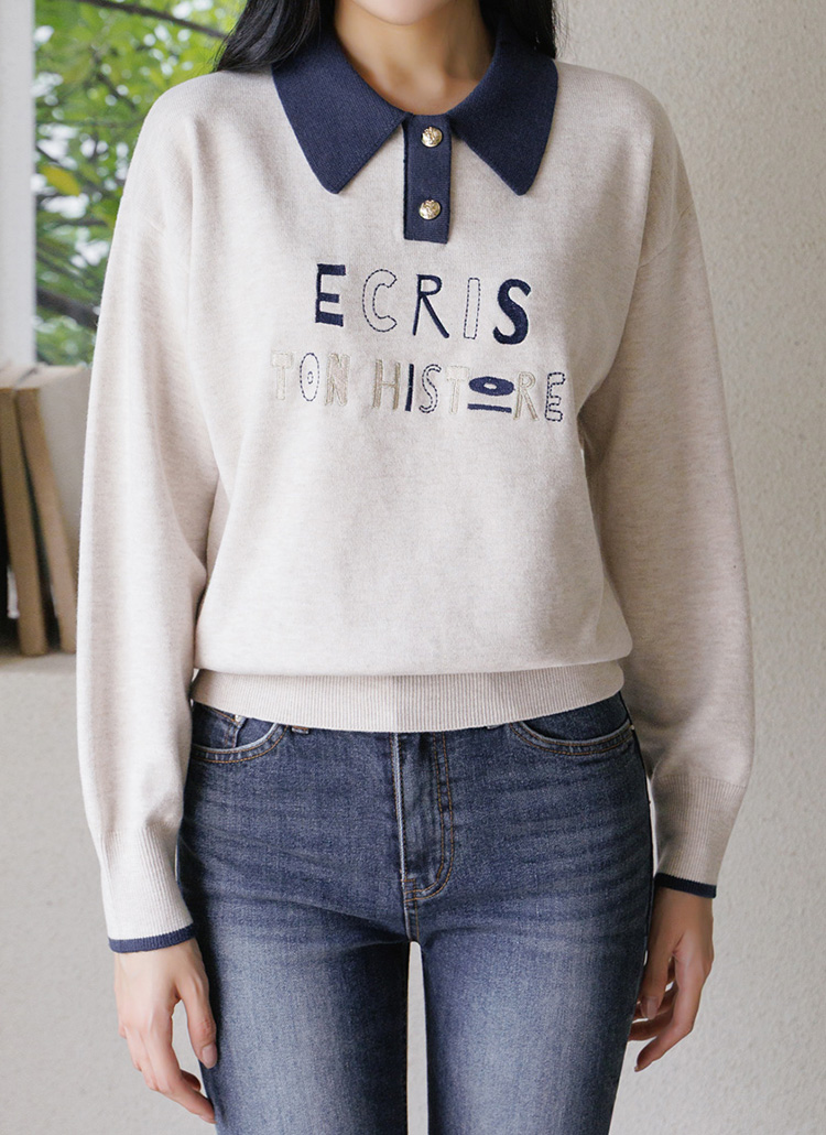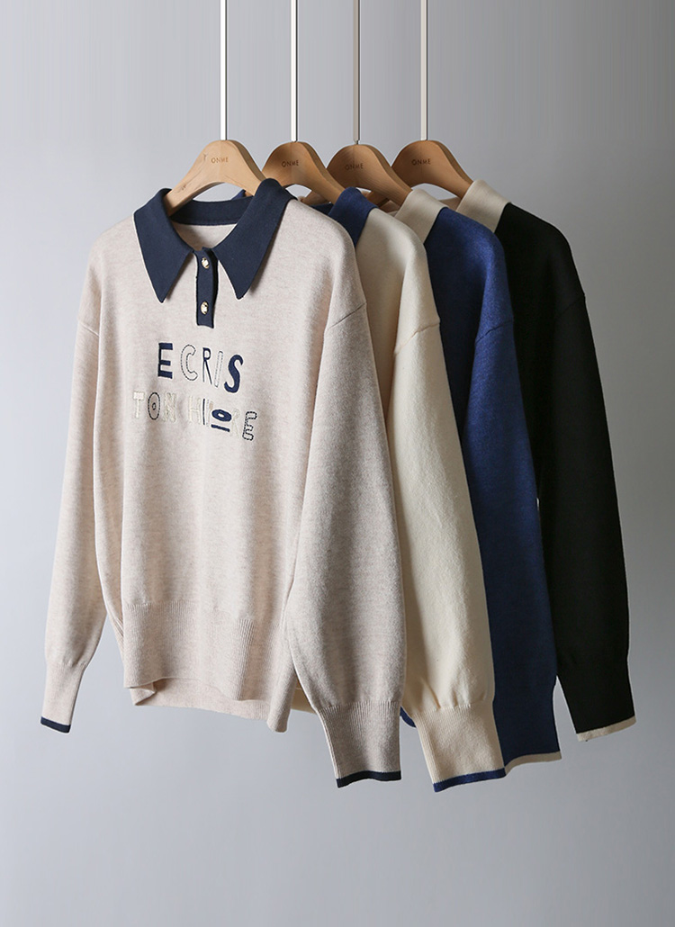 배색 카라가 돋보이는 비스코스 니트에요 :)