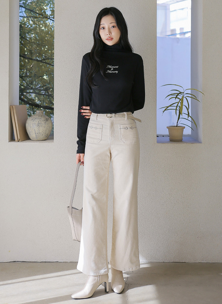 포켓 자수로 세련된 포인트를 준 세미와이드 팬츠에요 :)