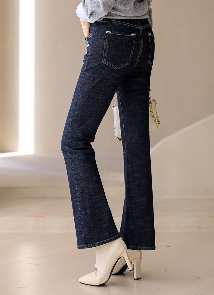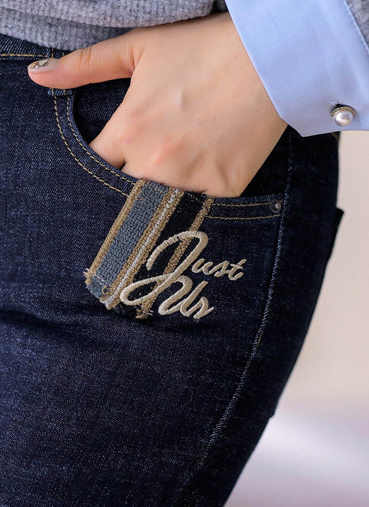세련된 슬림 부츠컷 라인에 자수 포인트가 있어