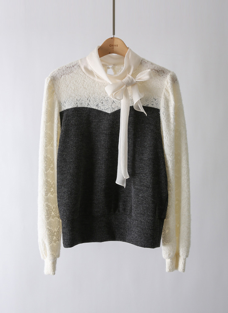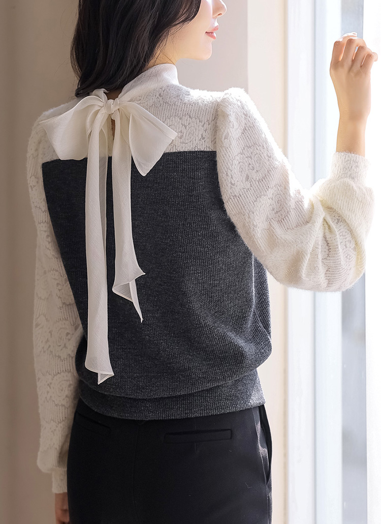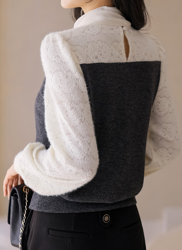 포근포근 날개사 레이스 블라우스와 니트탑을 레이어드 한듯~