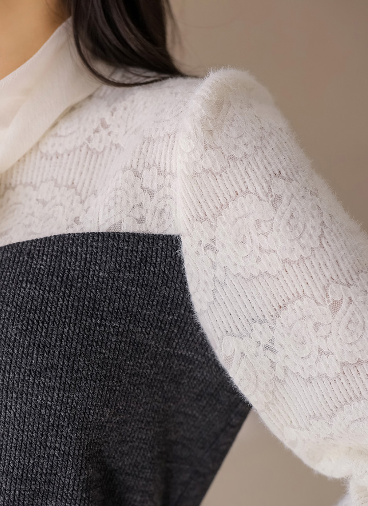 어깨와 소매 부분에 날개사 기모 레이스를 배색해주고