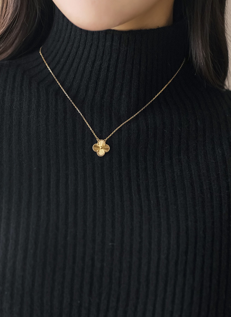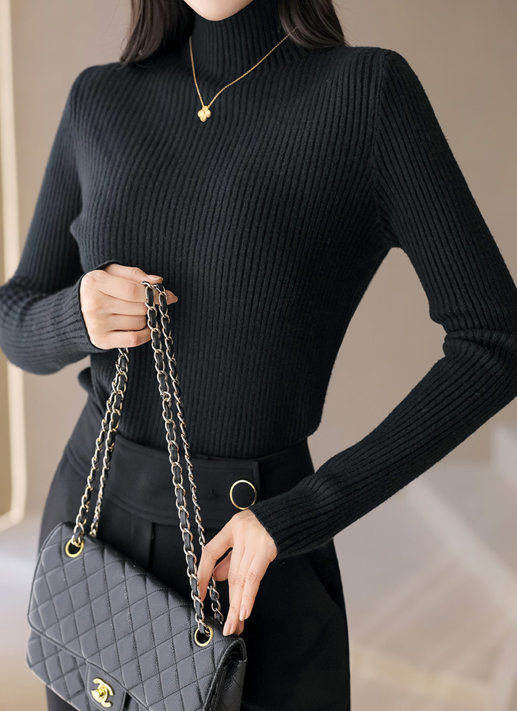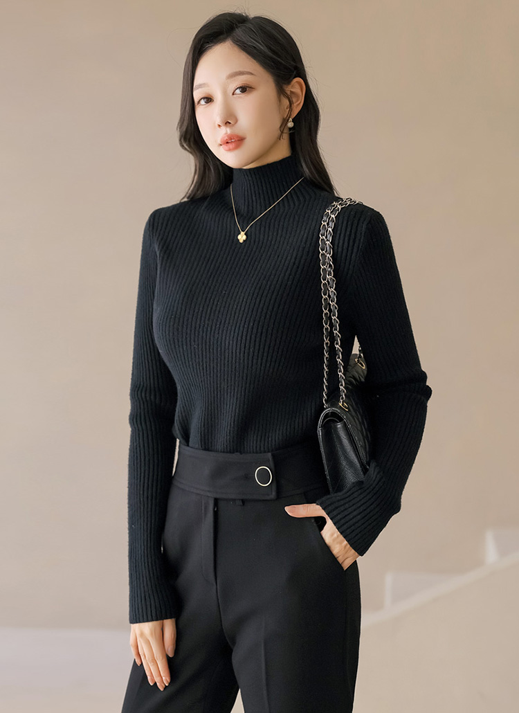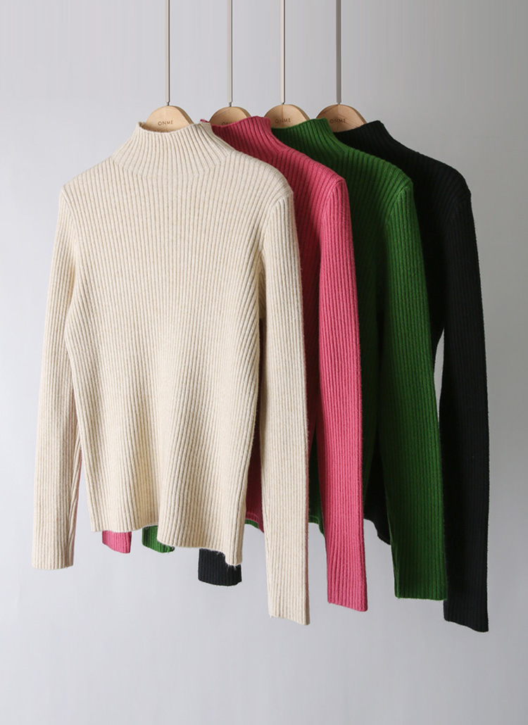 톡톡한 골지 소재 니트에 반하이넥 디자인으로