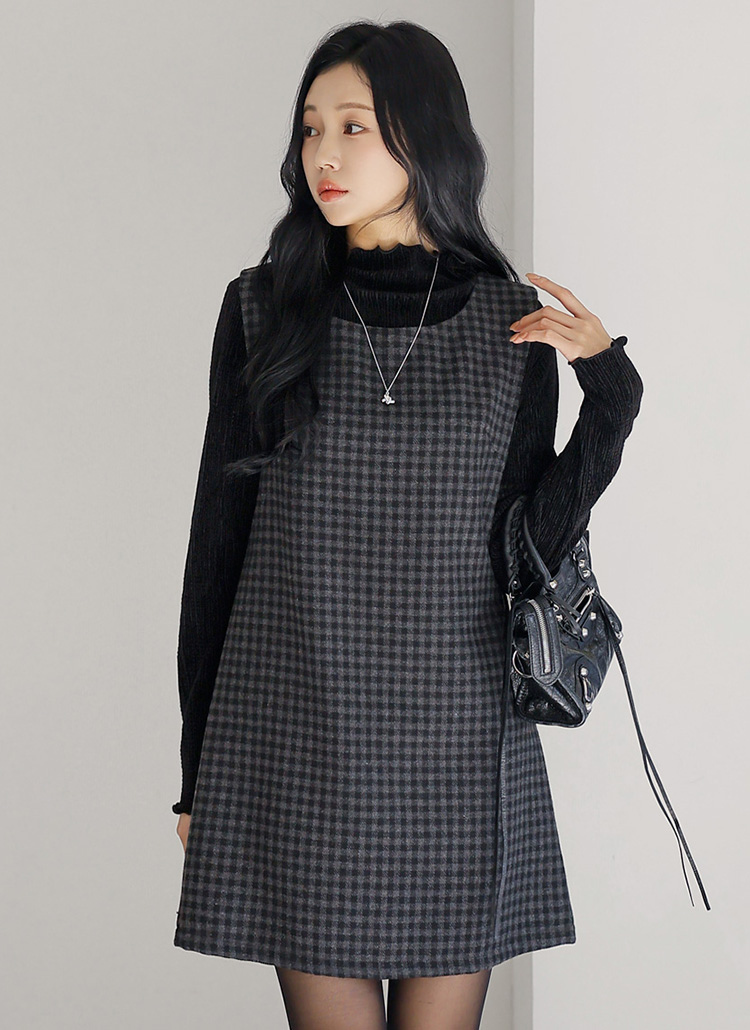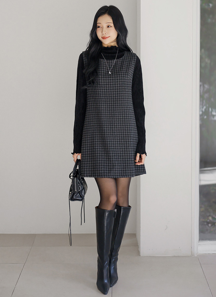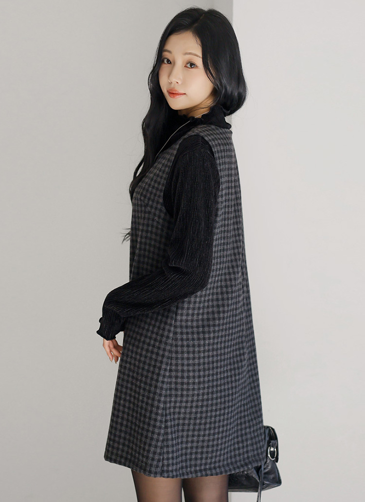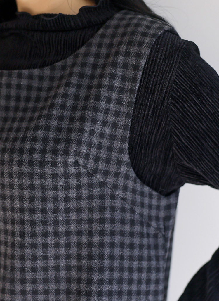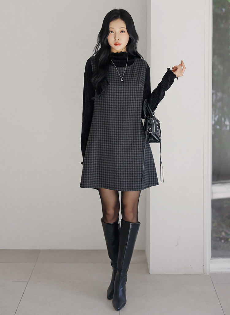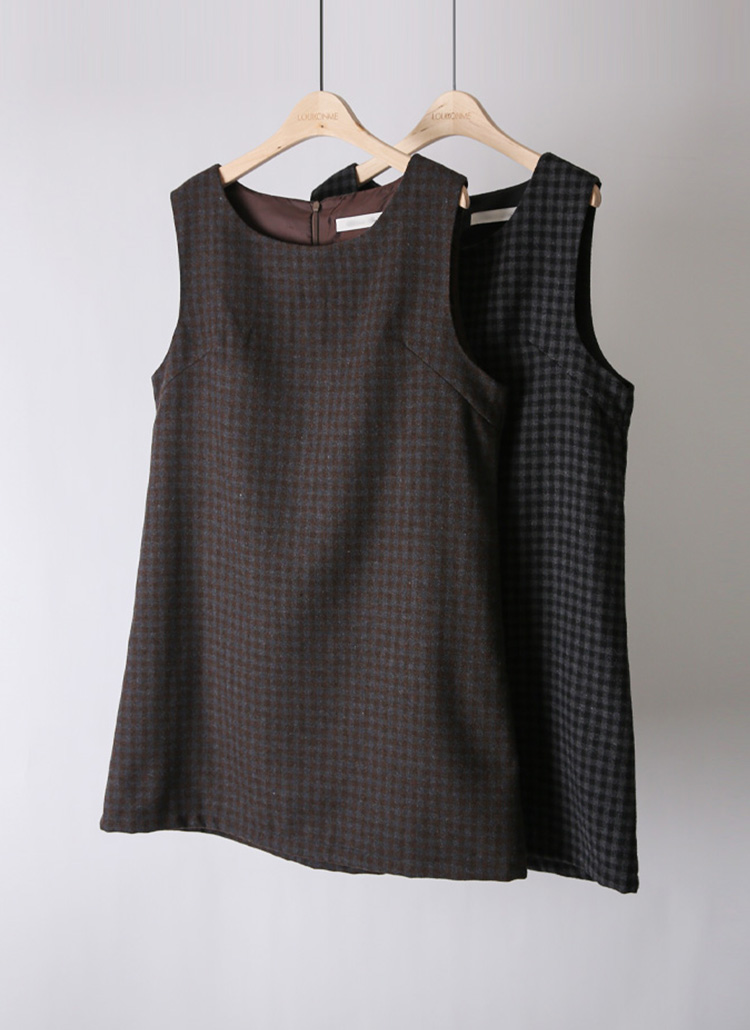 A라인 실루엣의 체크 미니 나시 원피스예요 :)