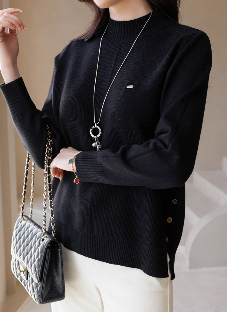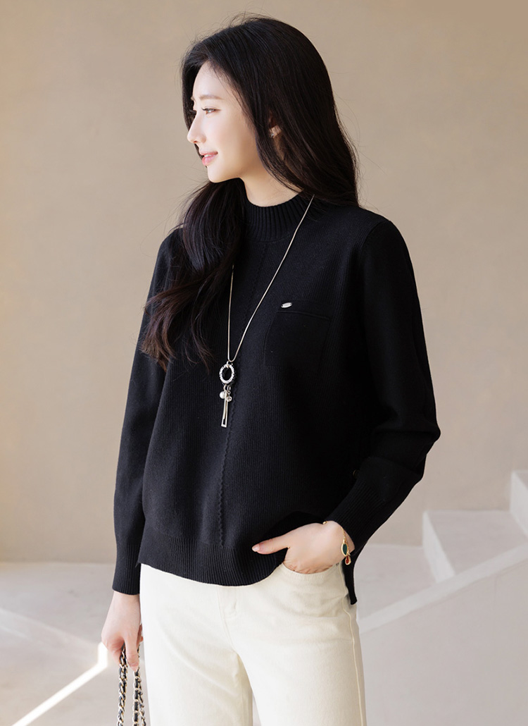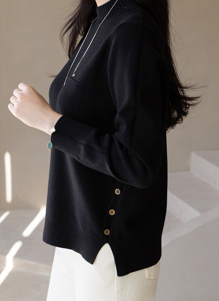 심플하면서 살짝 포인트가있어 밋밋함없이 멋스럽게 입기 좋은 니트에요