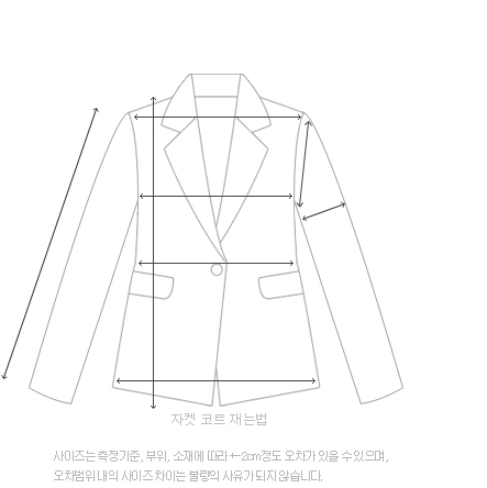 | 옵션 | 어깨 | 가슴 | 암홀 | 팔뚝단면 | 소매길이 | 허리 | 밑단 | 총기장 |