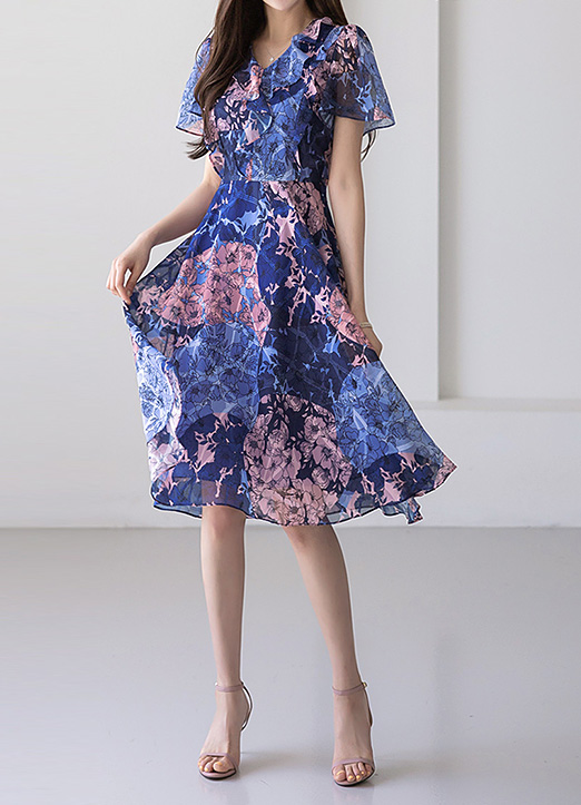 루이스엔젤 특.제 미스티 블루 쉬폰 플레어 원피스예요