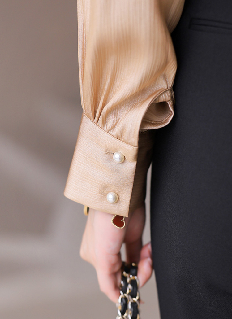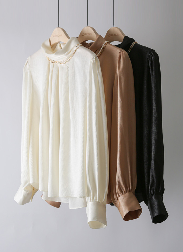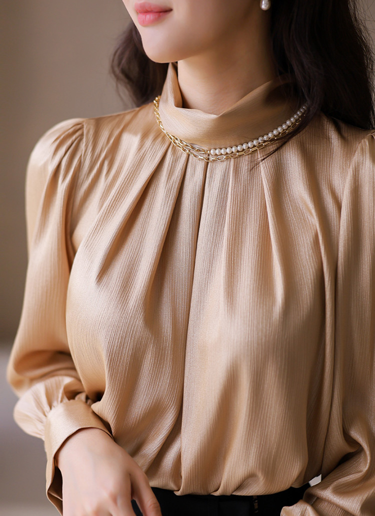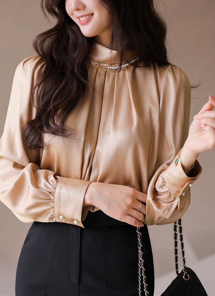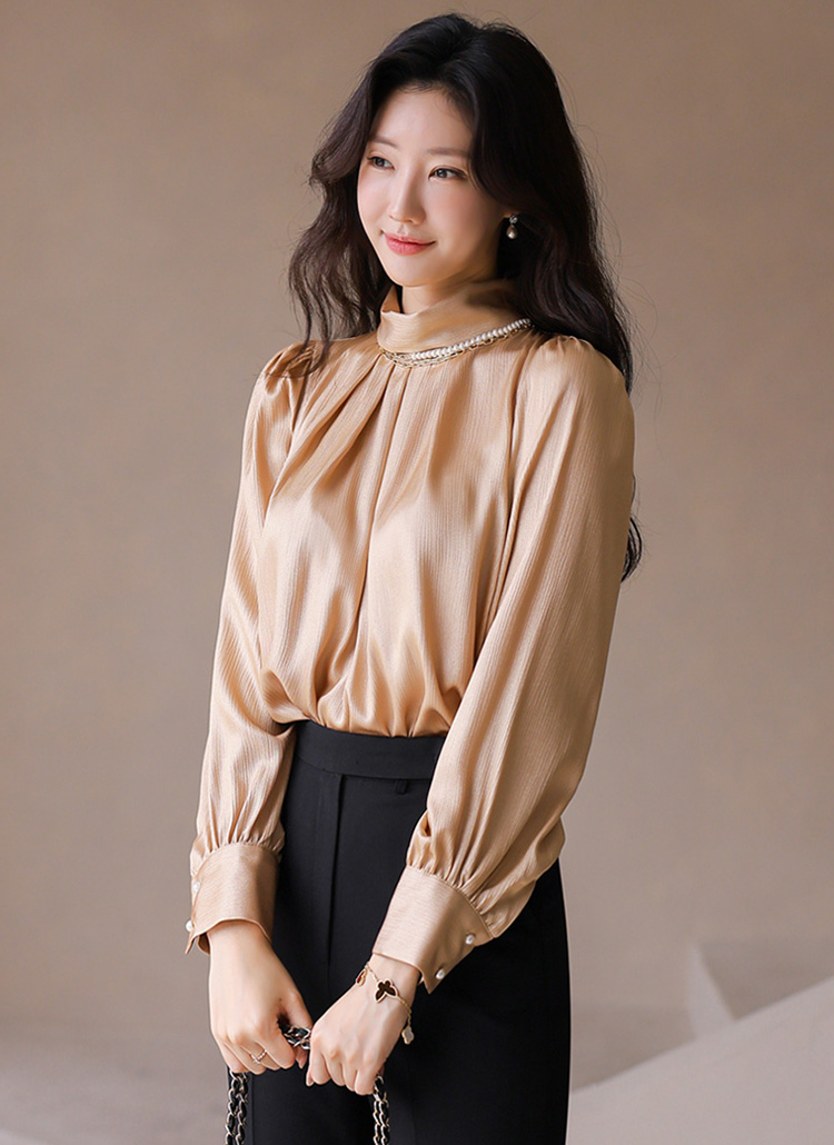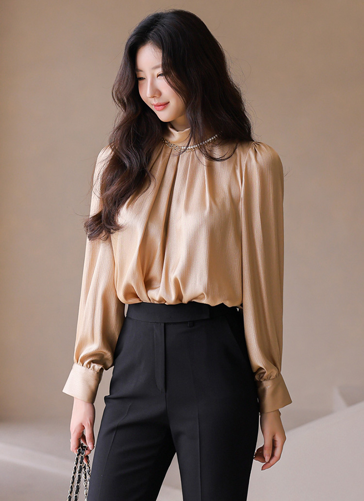 반하이넥 셔링 새틴 블라우스에요 :)