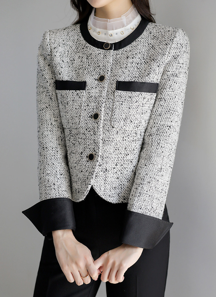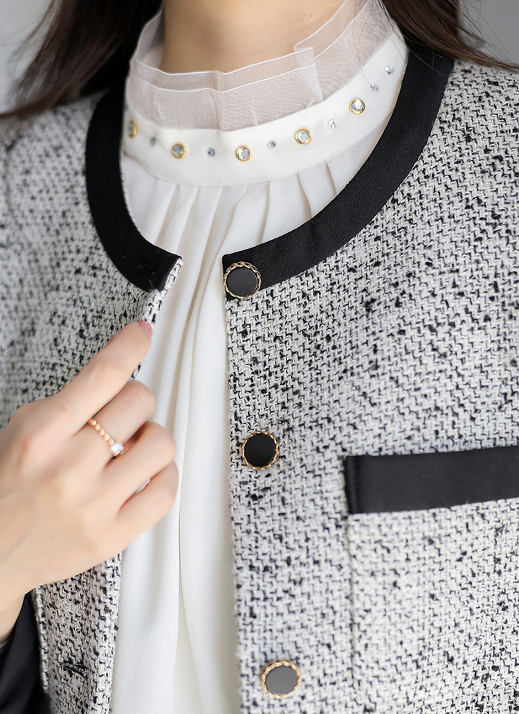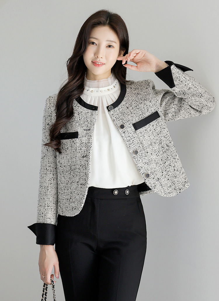 탄탄한 트위드 소재로 제작되어 고급스러운 아웃핏을 완성해주며,