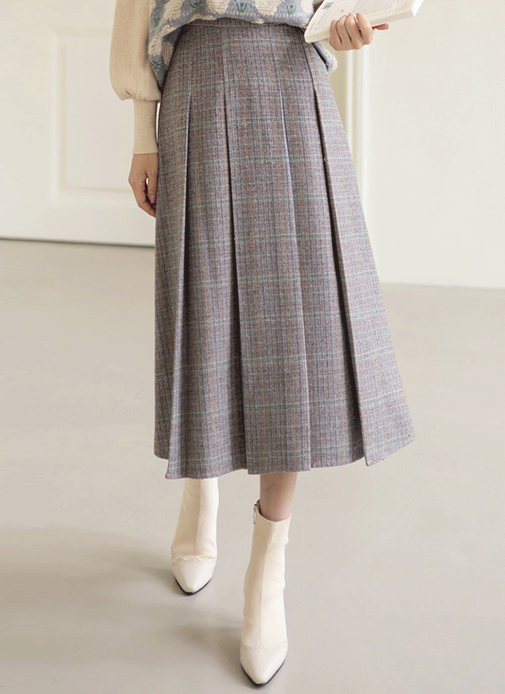 [루이스엔젤] 마일드 울 블렌딩 헤링본 플리츠 롱 스커트