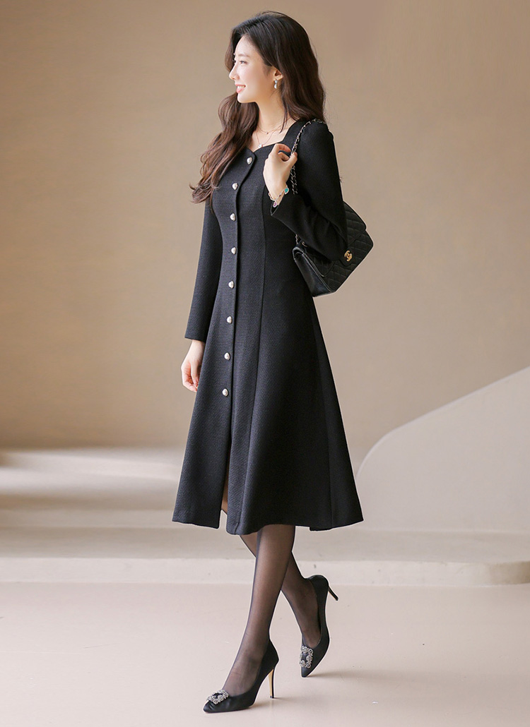 슬림한 허리 라인과 부드럽게 퍼지는 A라인 실루엣으로