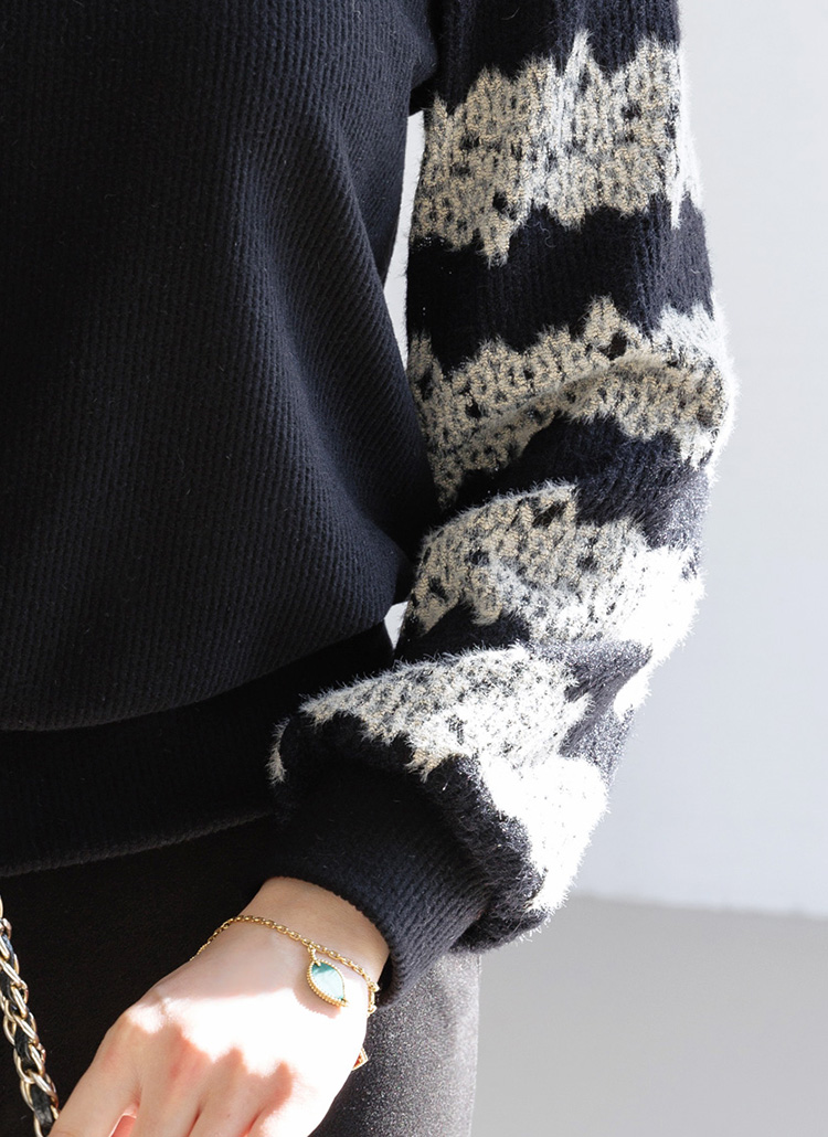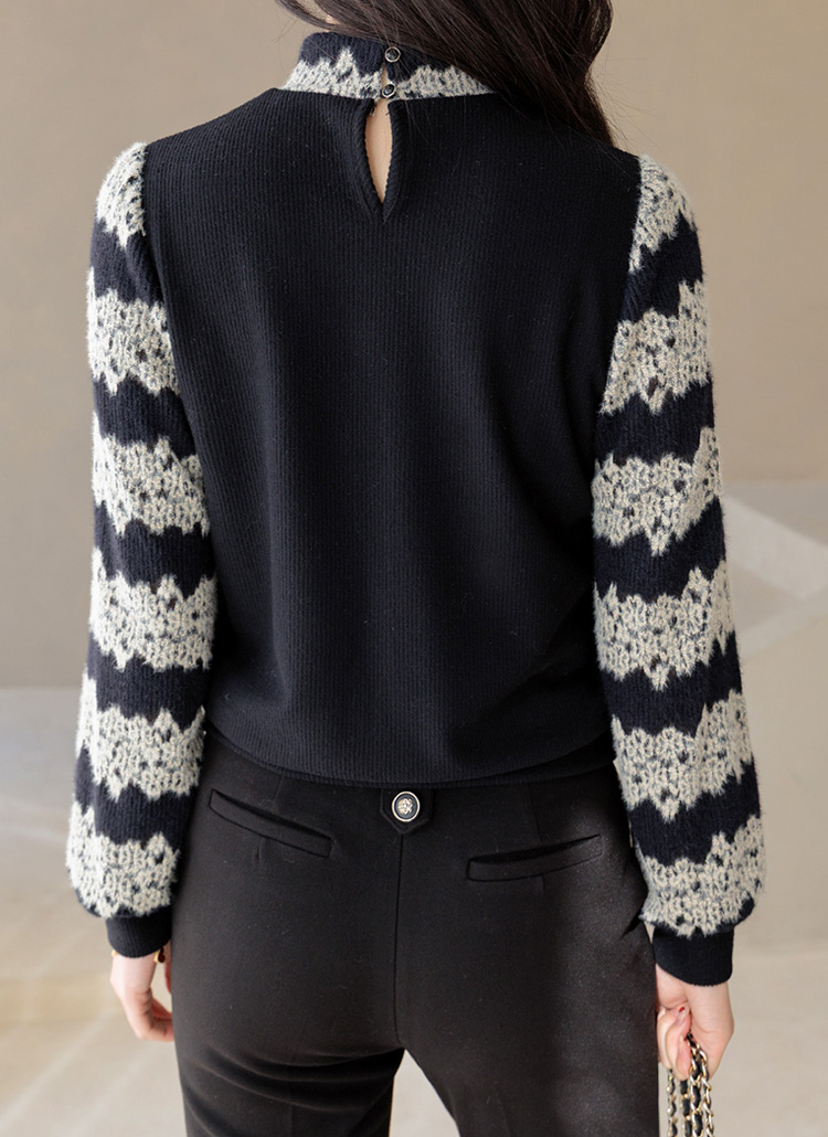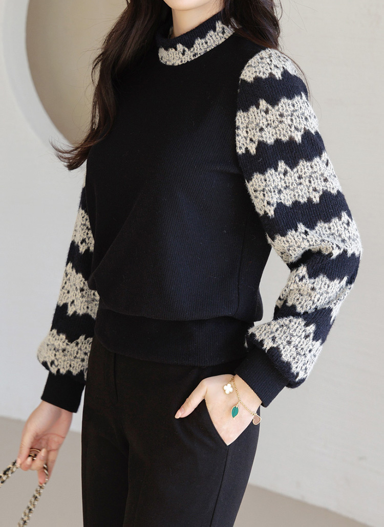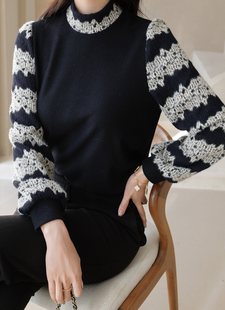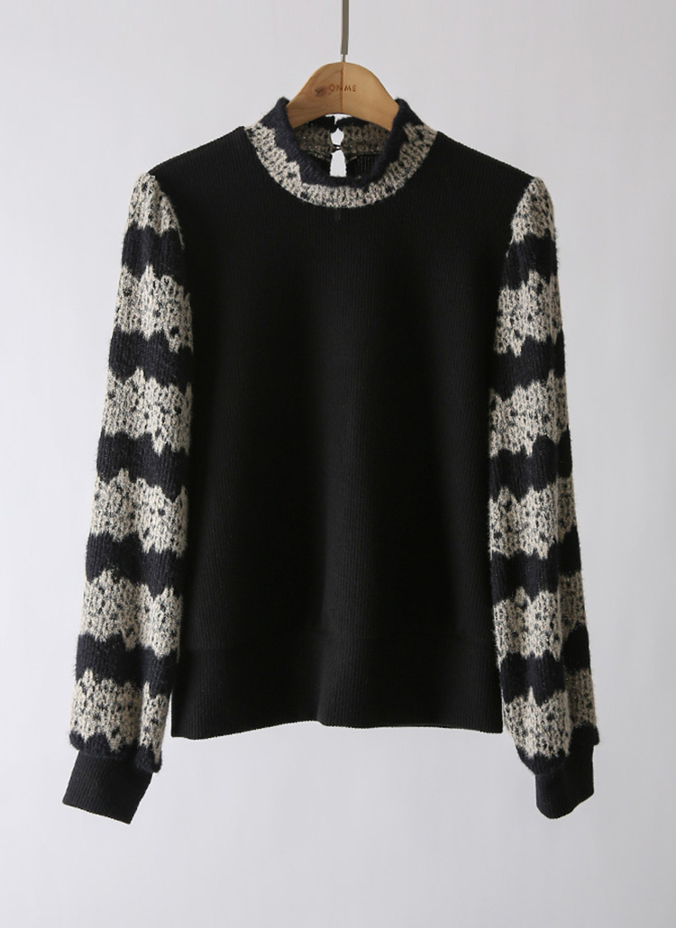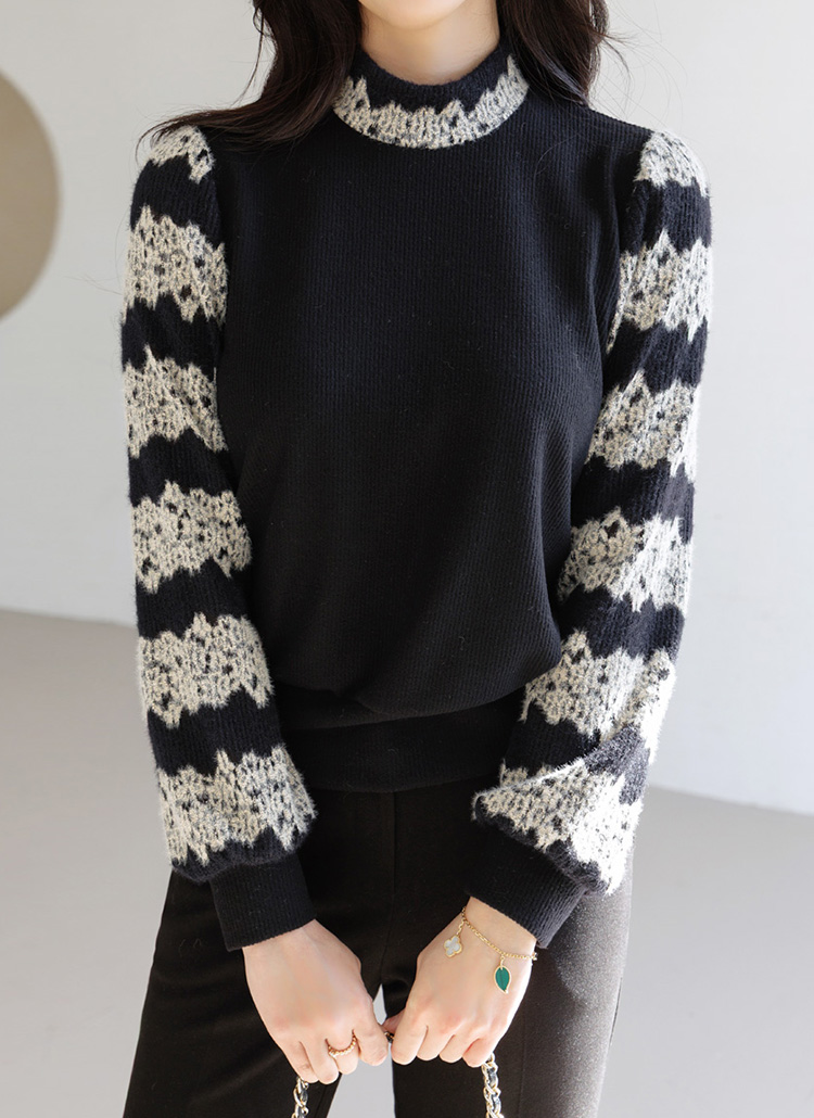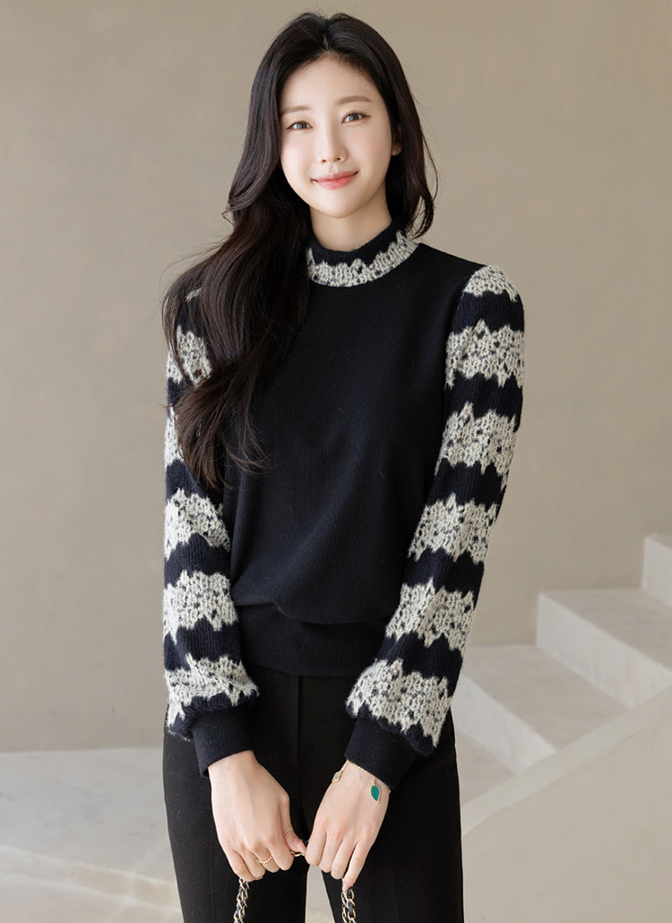 ✨[루이스엔젤] 헤이벤 눈꽃 기모 레이스 배색 반하이넥 니트 블라우스 티✨