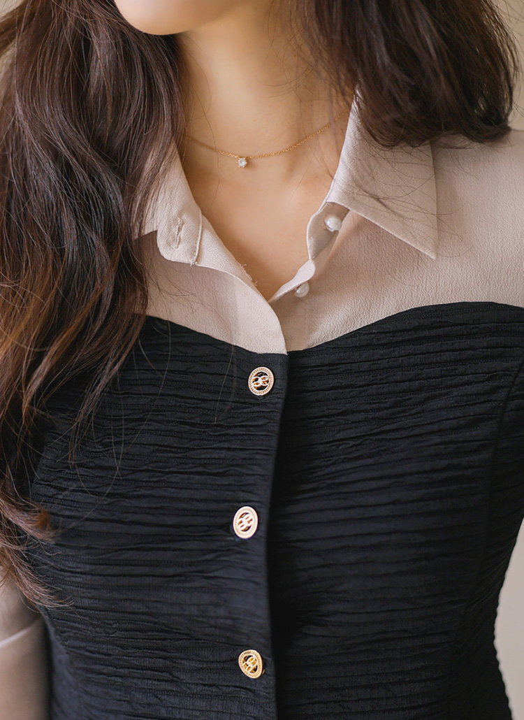 뷔스티에 라인으로 배색이 들어가 레이어드한 듯 멋스럽게 완성된 디자인으로 나왔으며