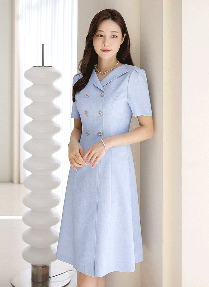 오픈 랩 카라와 더블버튼으로 고급스러움을 강조한