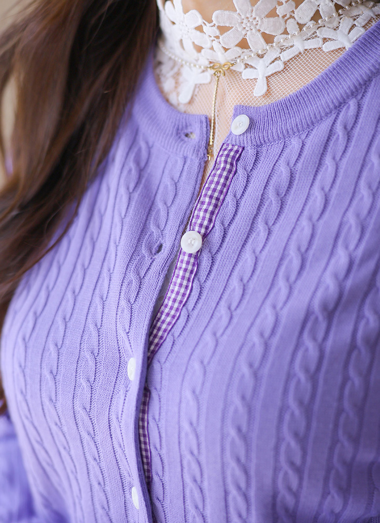 버튼 안쪽의 체크 배색 포인트로 캐주얼하면서도 사랑스러운 무드를 자아내는