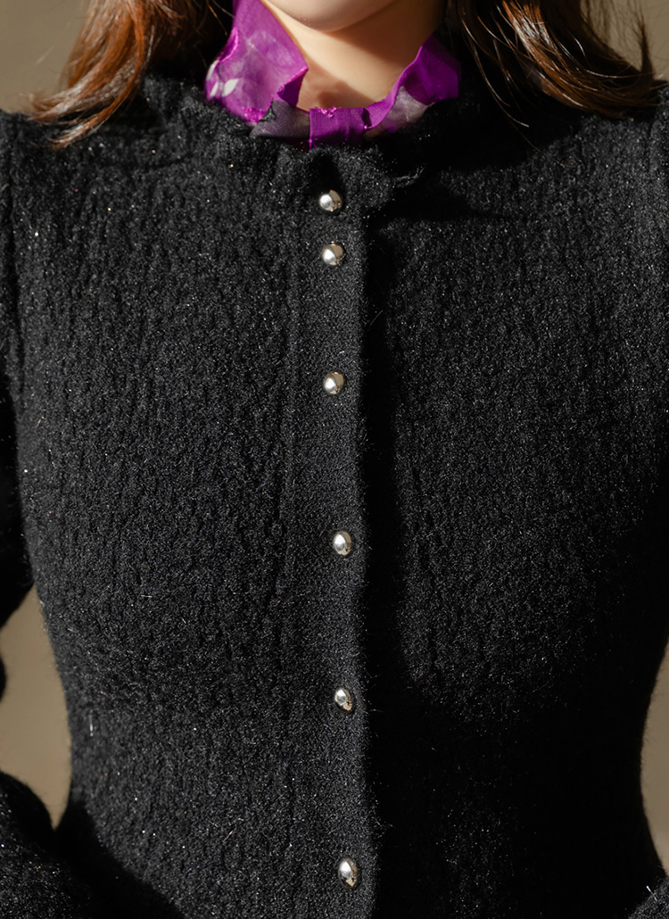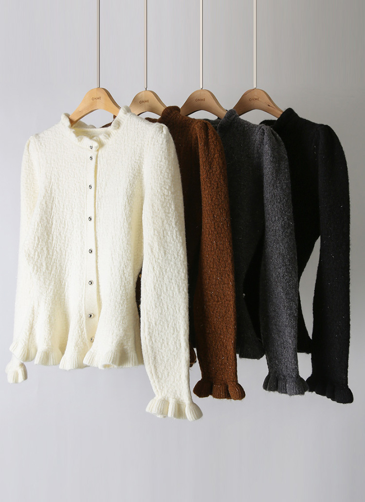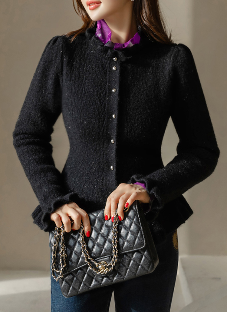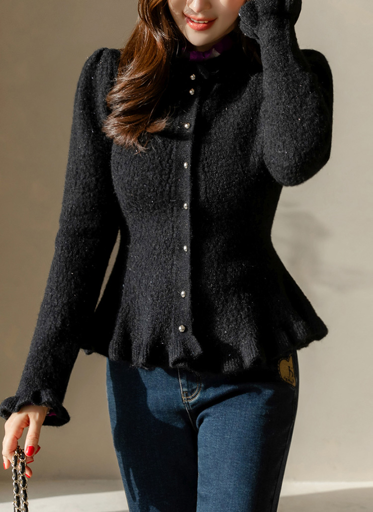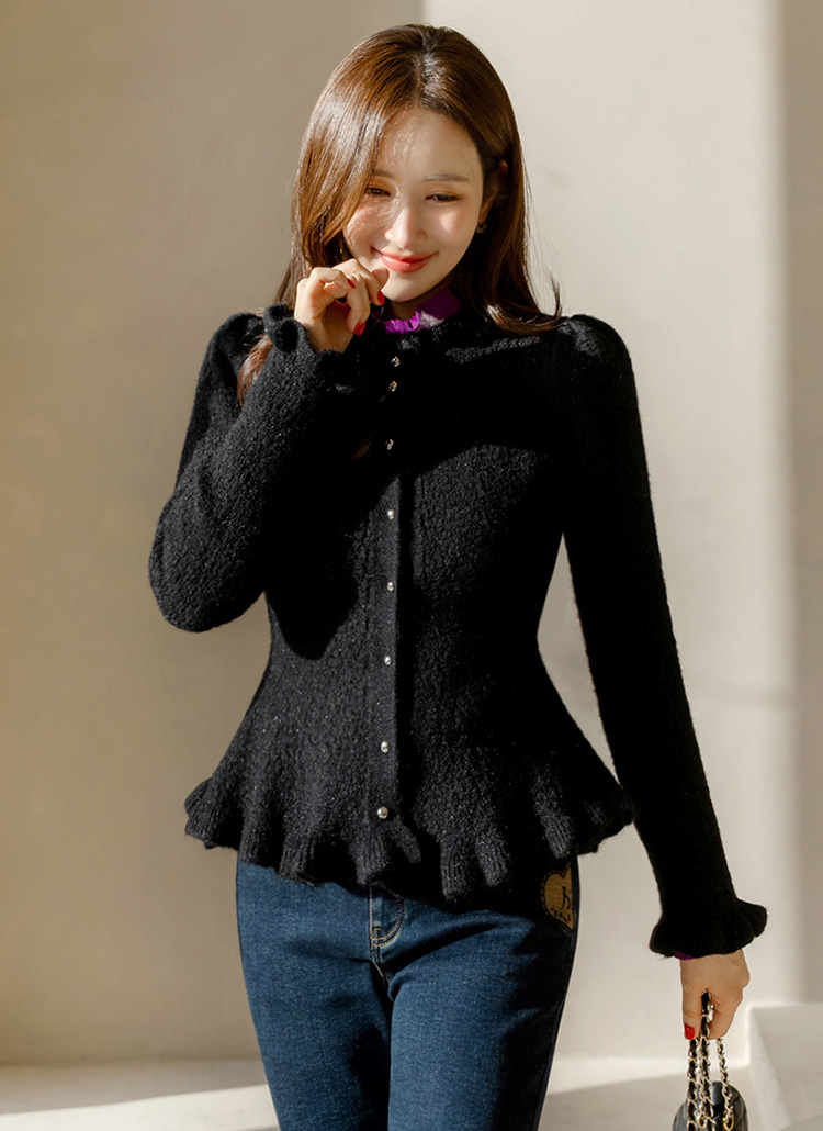 은은한 화사함과 우아한 실루엣을 동시에 선사하는 페플럼 니트 가디건이에요