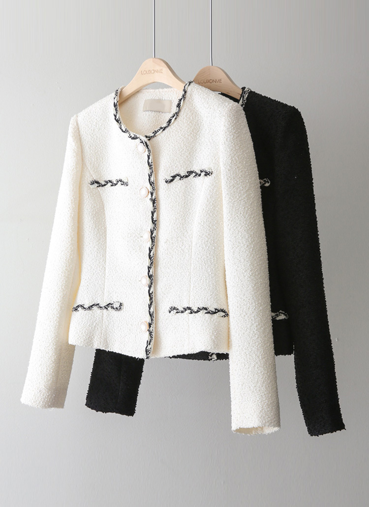 프리엘 배색 브레이드 라인 퍼펙트 슬림 트위드 자켓