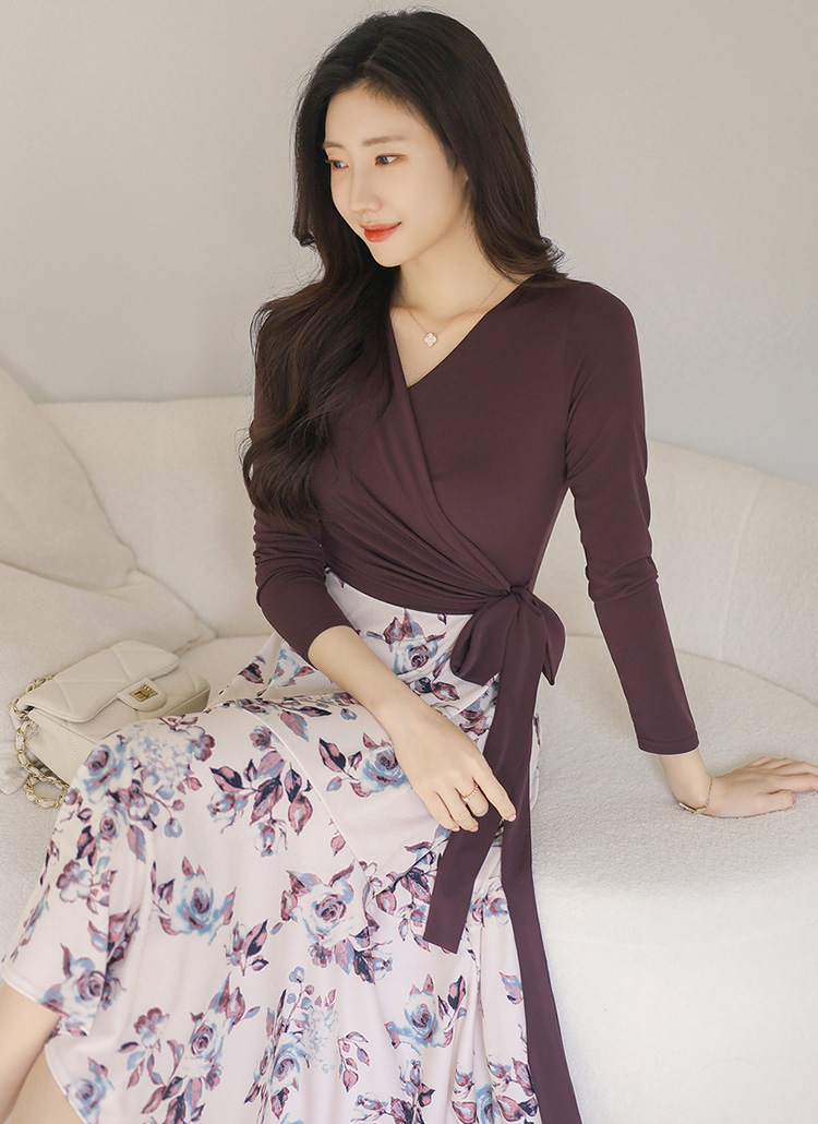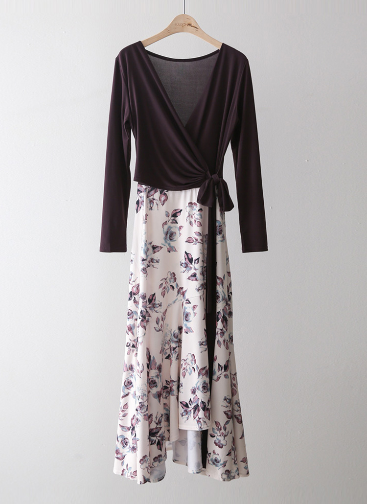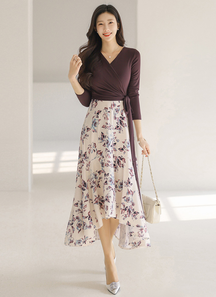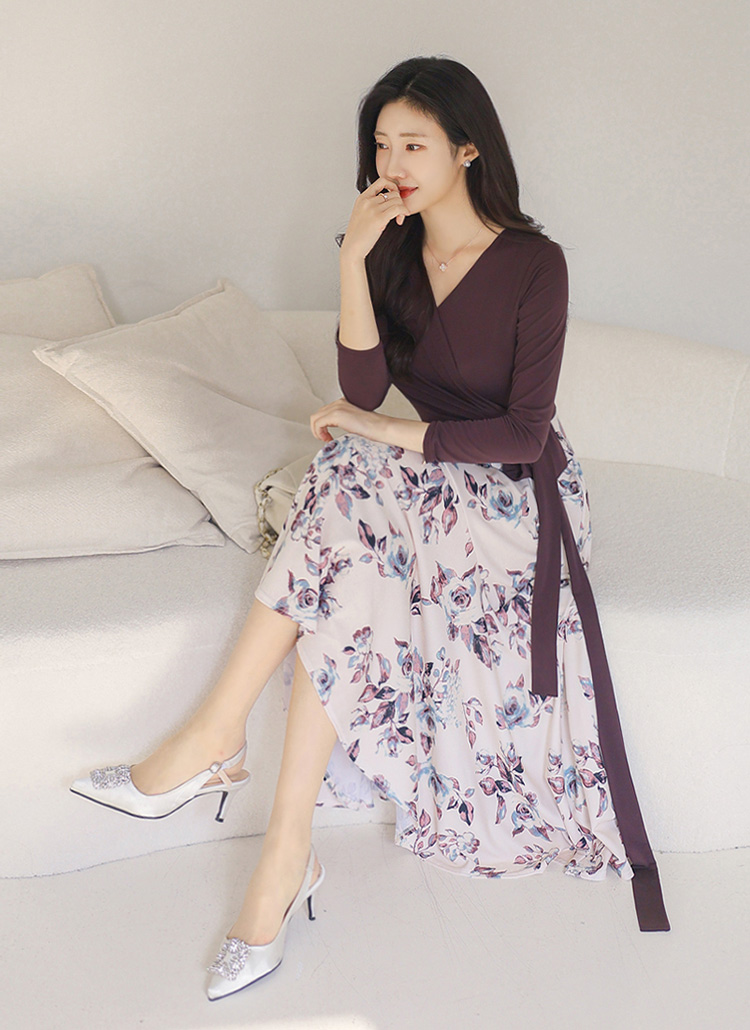 랩 블라우스와 스커트를 함께 스타일링한 듯 연출되어