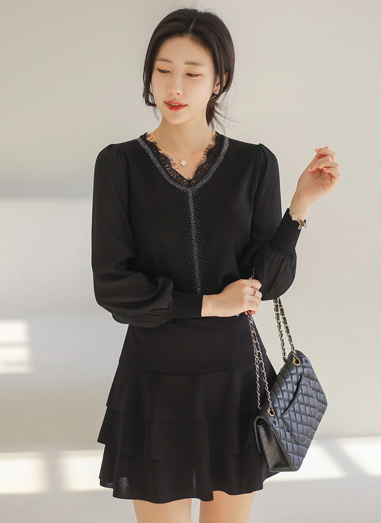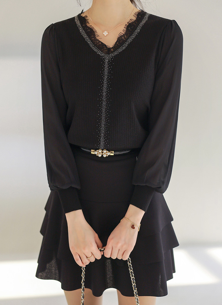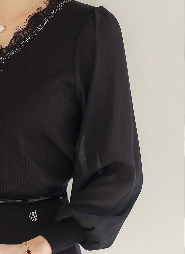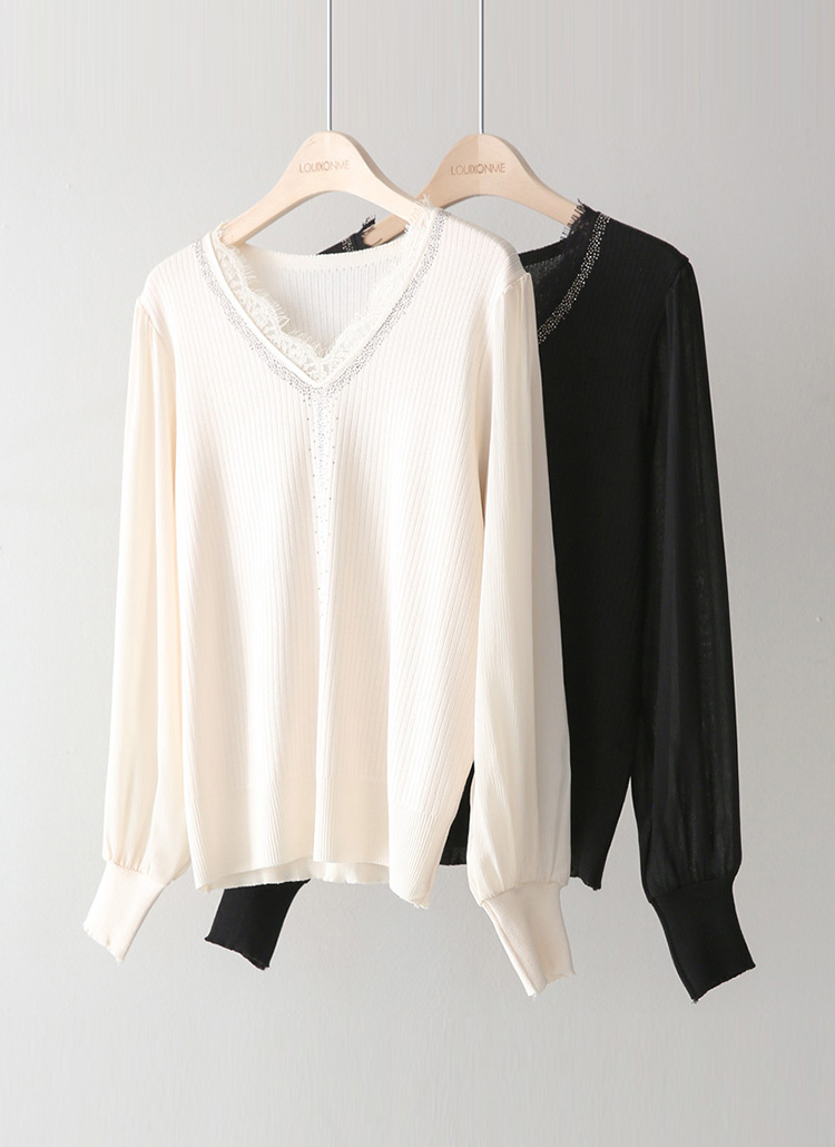 여리여리한 감성과 은은한 반짝임이 어우러진 니트 블라우스에요