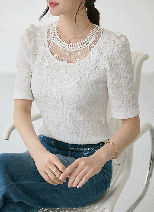 | 제품소재 | : | 폴리에스터97% 폴리우레탄3% / 레이스배색:폴리에스터60% 레이온35% 폴리우레탄5% |