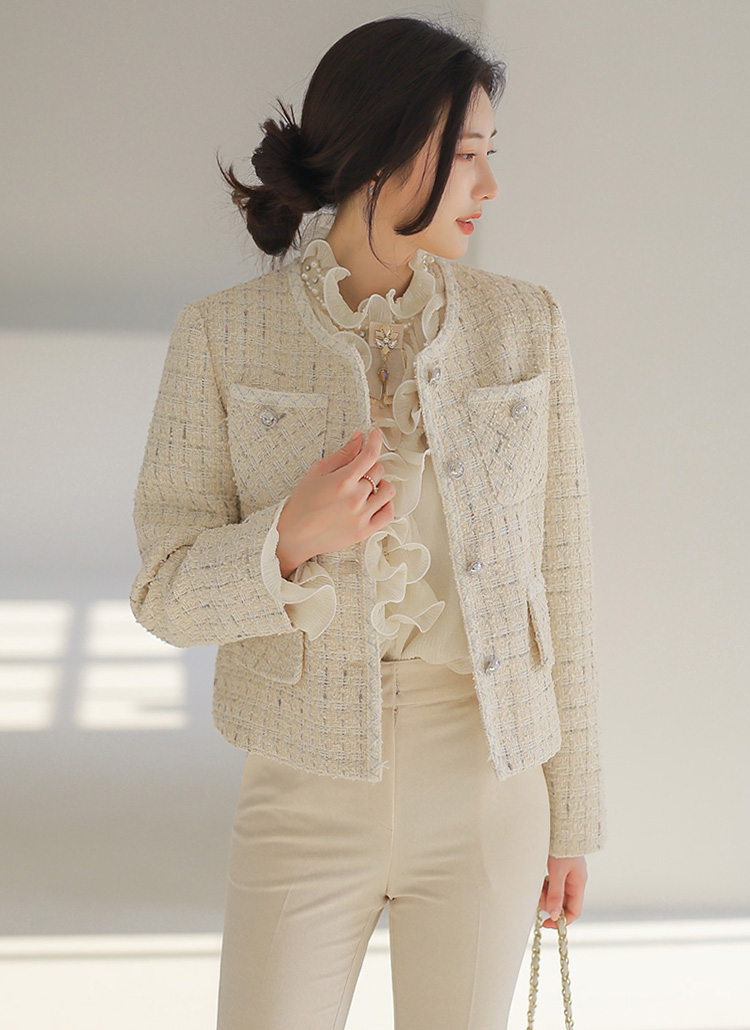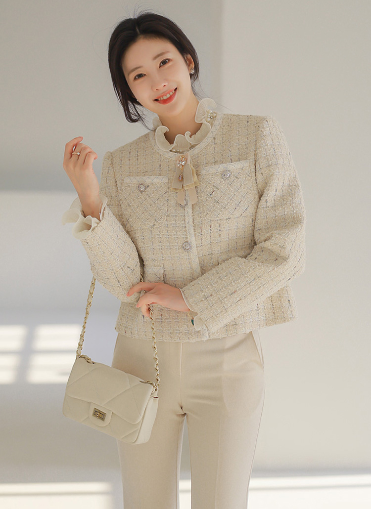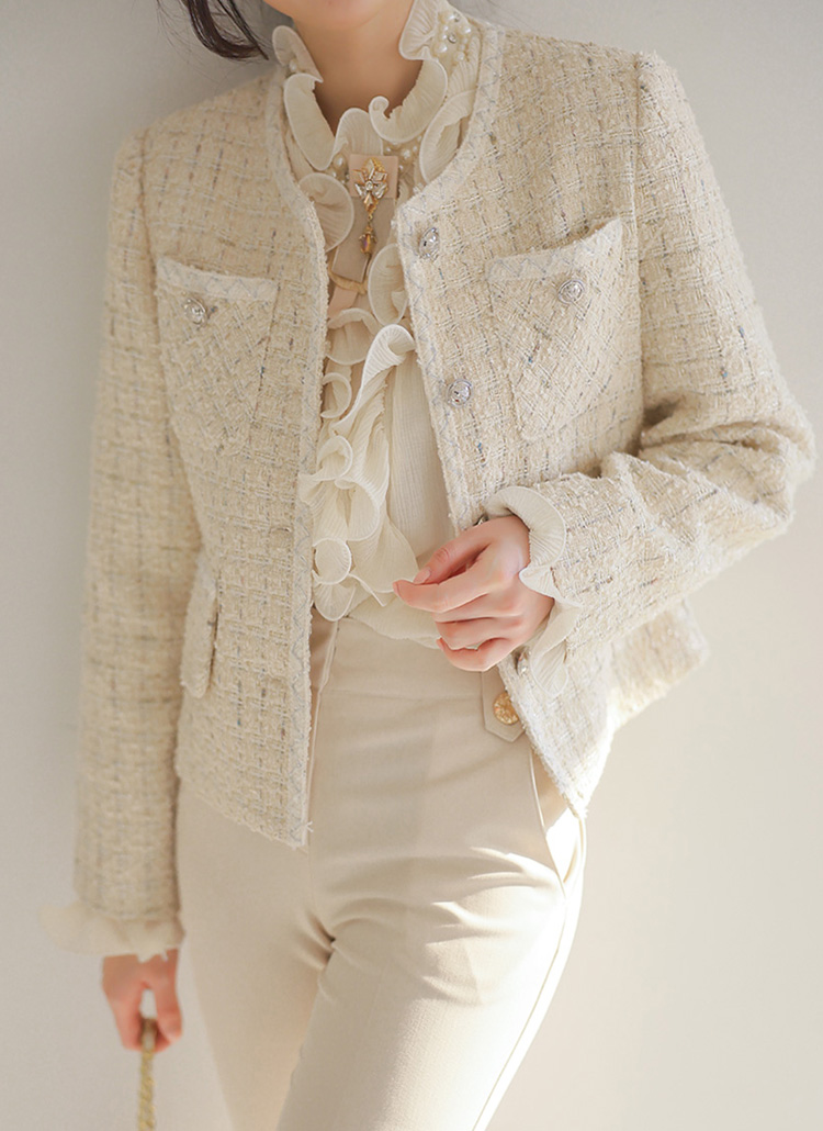 한층 더 우아한 스타일을 완성하는 트위드 자켓이에요