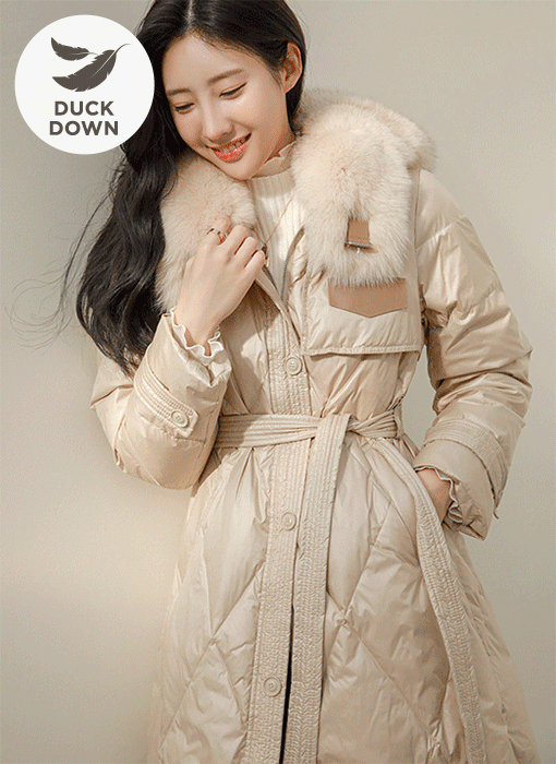 | 제품소재 | : | 겉감-폴리에스터100%/충전재-오리솜털90% 깃털10% /퍼-리얼라쿤 |