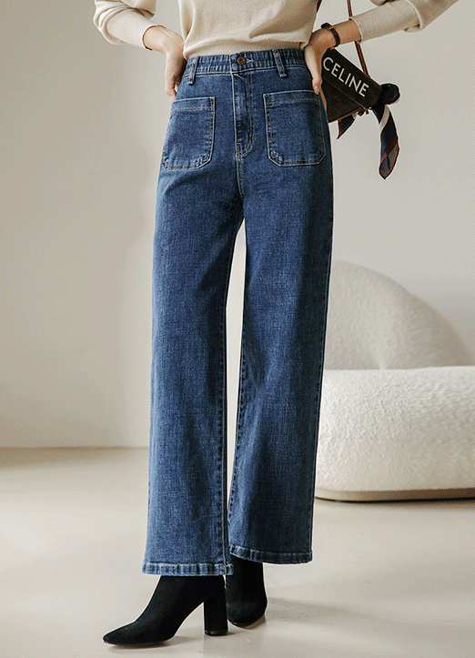 미스티블루 히든밴딩 앞 포켓 세미 와이드 데님 팬츠
