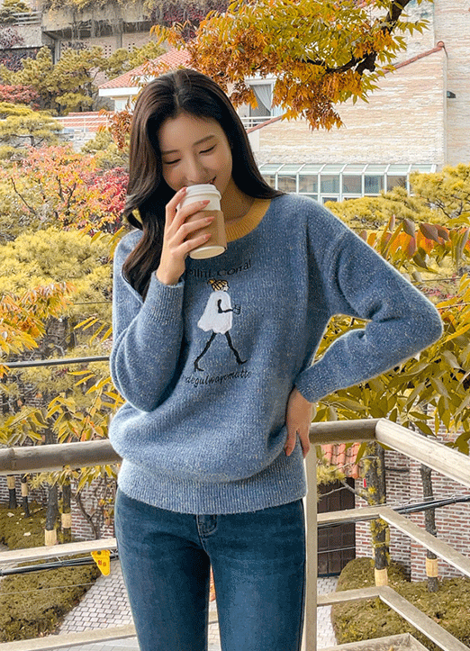 - 상품명 : 걸스 자수 패치 배색 시보리 니트