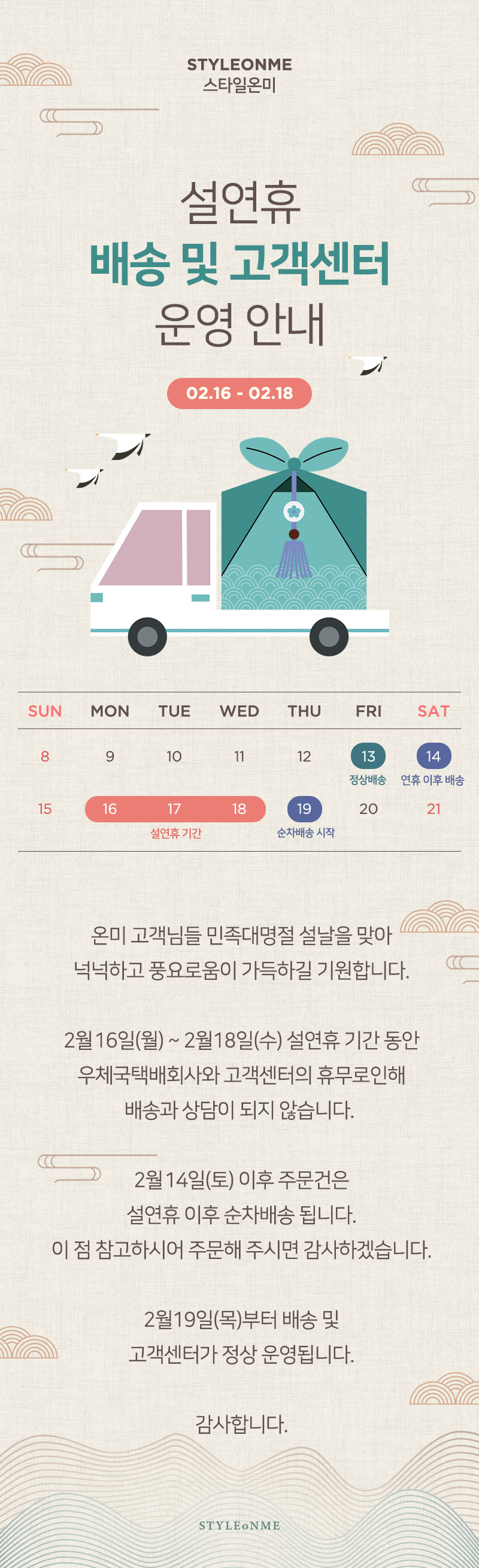 2026 설 연휴 배송안내🌞 |