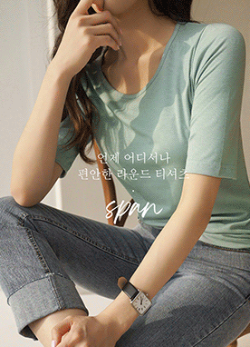 - 상품명 : [루이스엔젤] (1+1) 꼭 필요한 심플 라운드 5부 스판 티셔츠