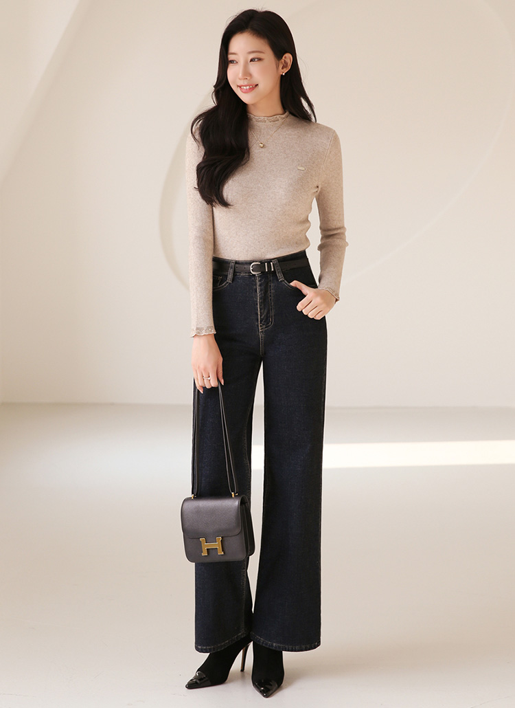 슬림하게 떨어지는 골지 실루엣이 바디라인을 예쁘게 정리해주는