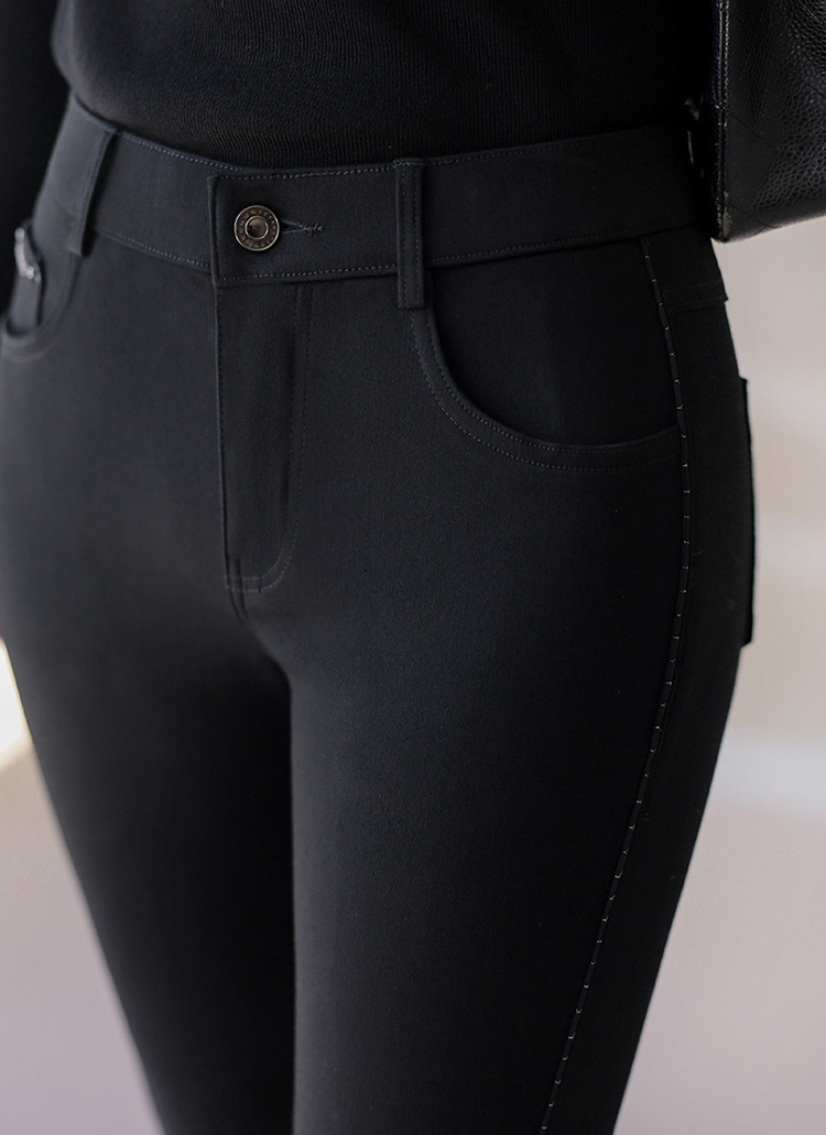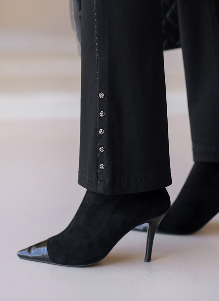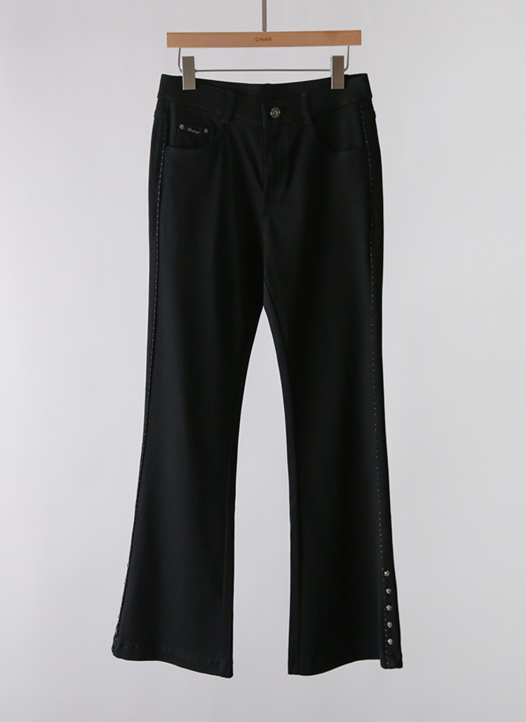 사이드 비즈라인과 로즈 스터드를 매치해 엣지있는 실루엣을 돋보여주는 슬림 부츠컷 팬츠에요 :)