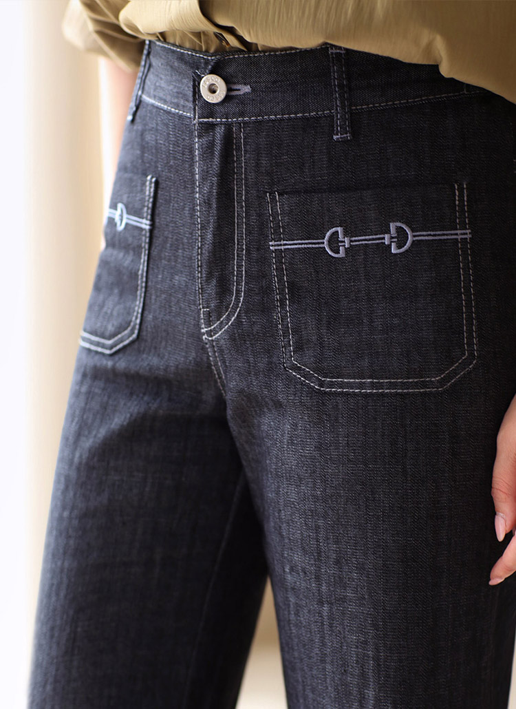 포켓에 더해진 자수 디테일이 포인트가 되어