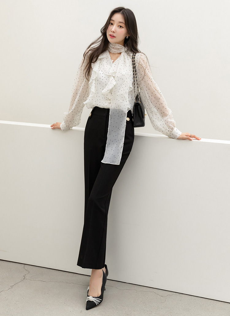 세미부츠컷이 깔끔하게 연출해주며 비조버튼으로 고급스러움이 느껴지는 슬랙스