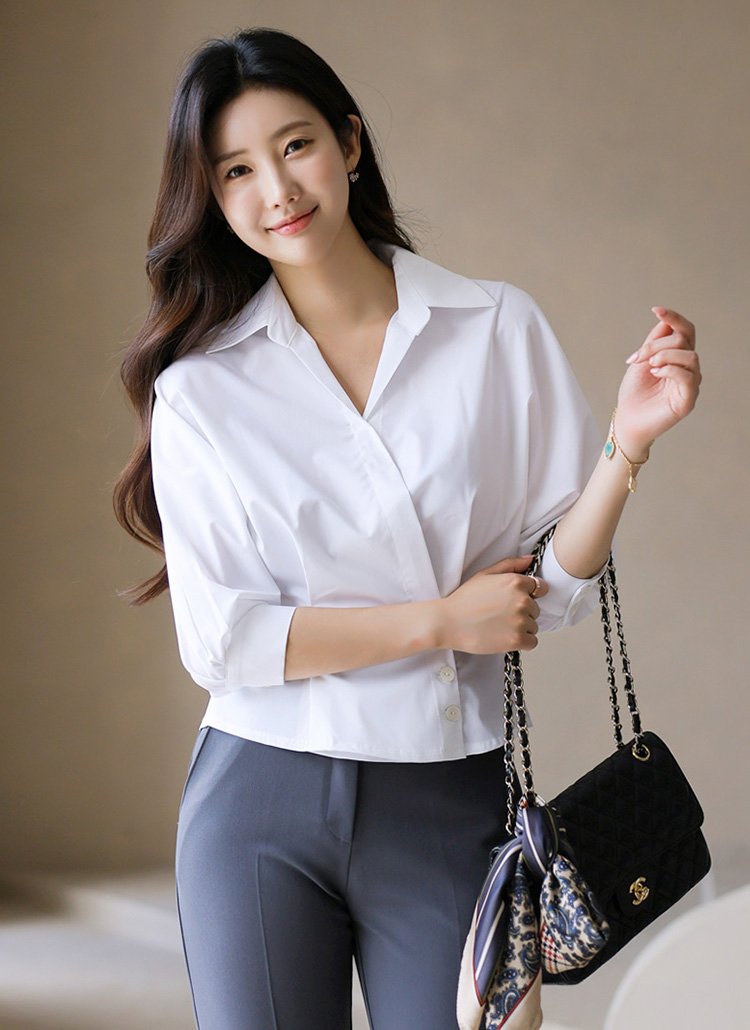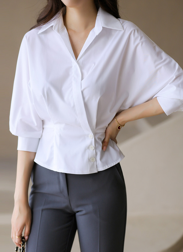 가오리 핏 소매와 사선 랩 디자인이 만나