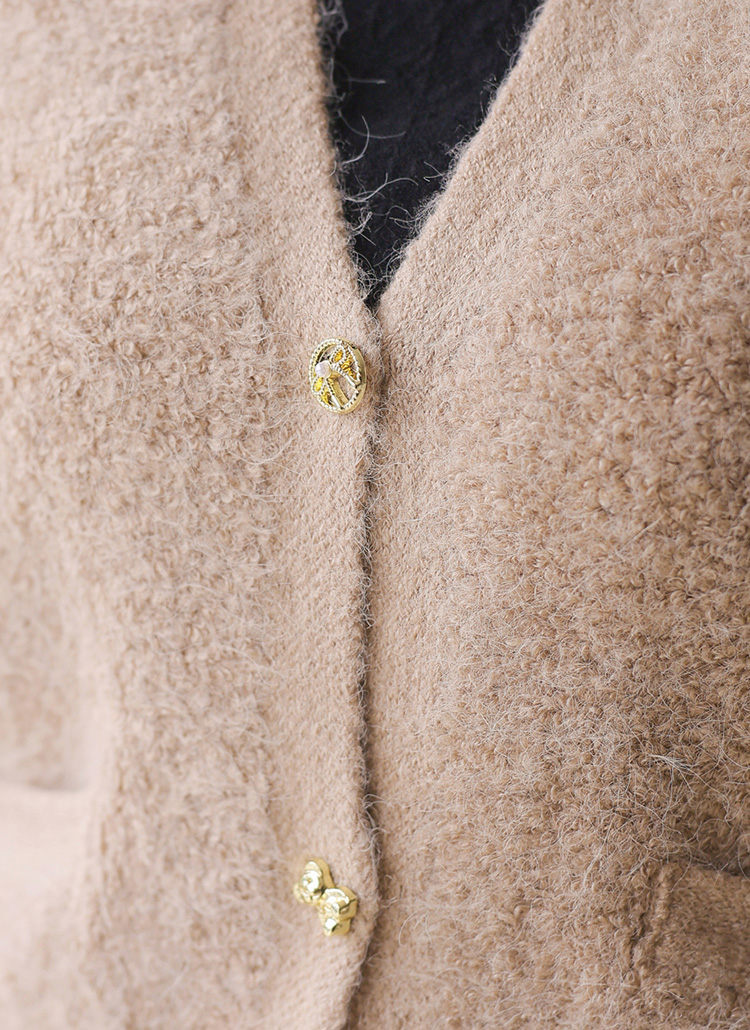 포근한 울 블렌딩 소재에 골드 버튼으로 포인트를 준 뽀글뽀글 니트 조끼에요 :)