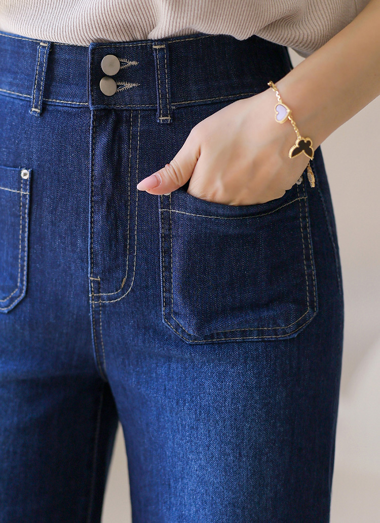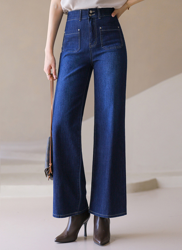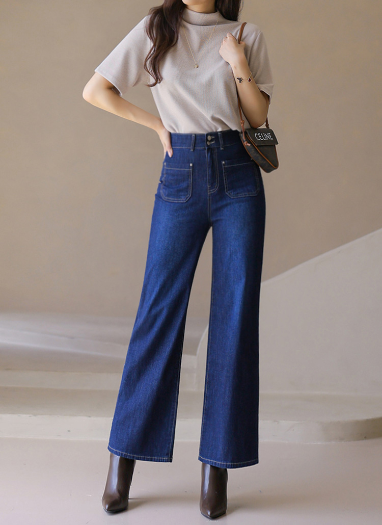아웃 포켓과 스티치 포인트로 세련된 캐주얼 무드를 선사하는 세미 와이드 데님 팬츠에요 :)
