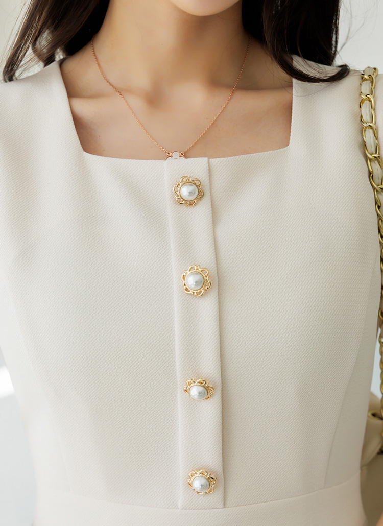 우아하게 빛나는 진주 버튼이 포인트가 되어