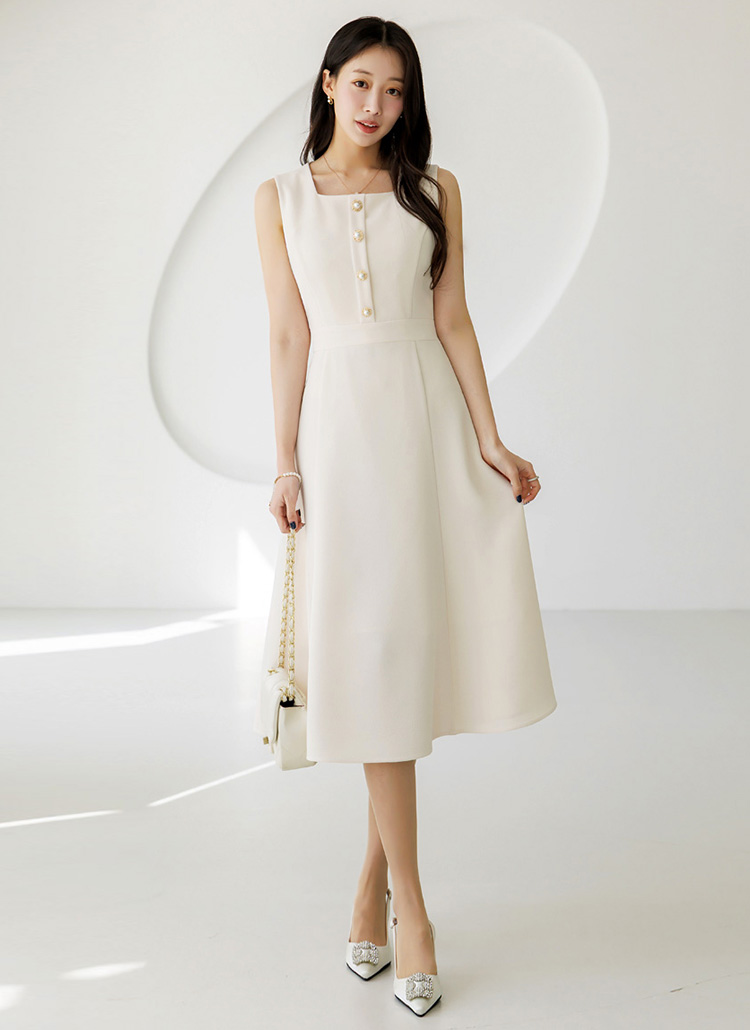 넥 라인은 단정한 스퀘어넥으로 디자인되어