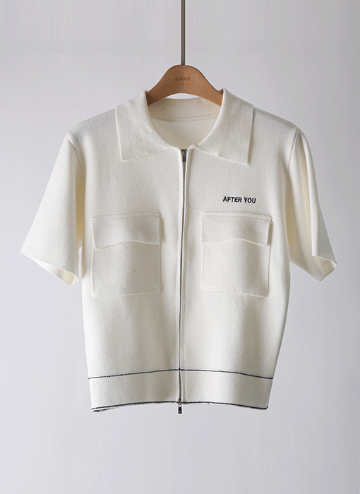 깔끔한 카라 디자인에 레터링 자수로 포인트를 준