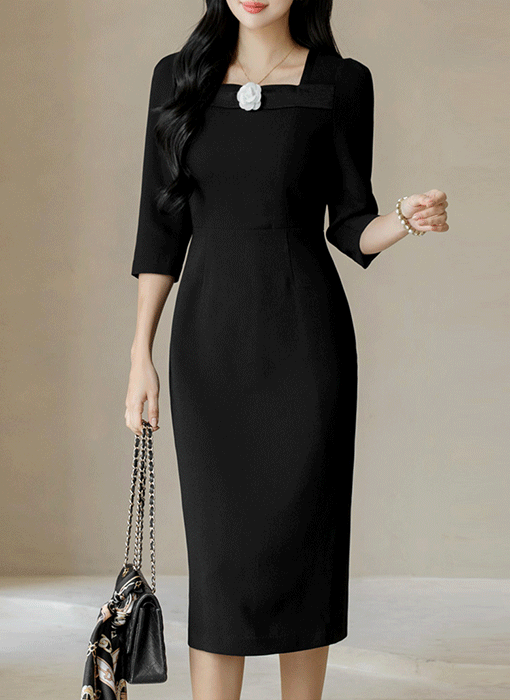 단정한 스퀘어 네크라인과 절제된 실루엣 위에 더해진