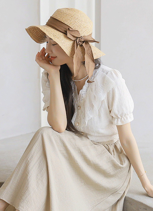 레이스 트리밍으로 화사하고 페미닌한 무드를 더해주며
