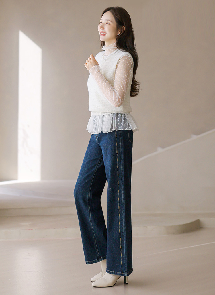 고급지고 화사하게 스타일을 완성하는 데님 팬츠에요