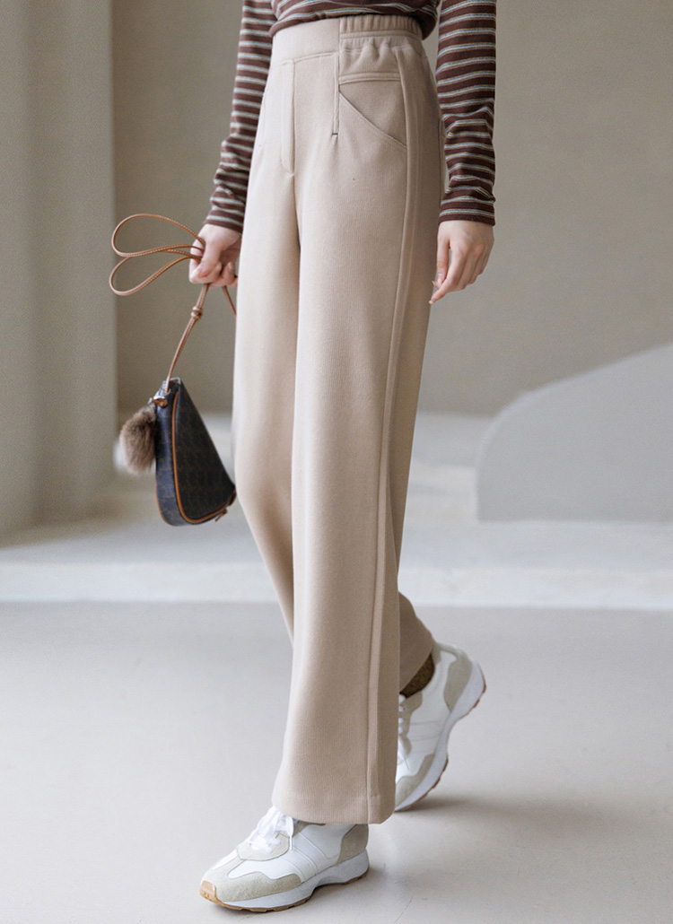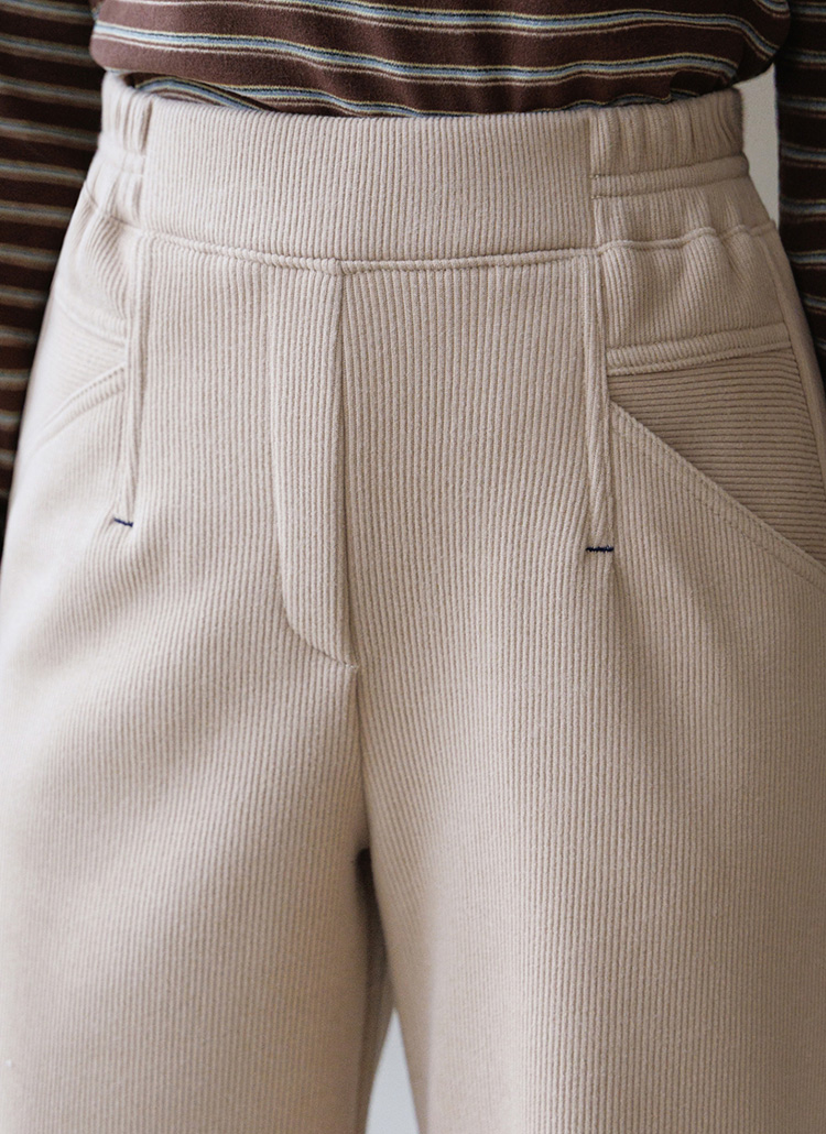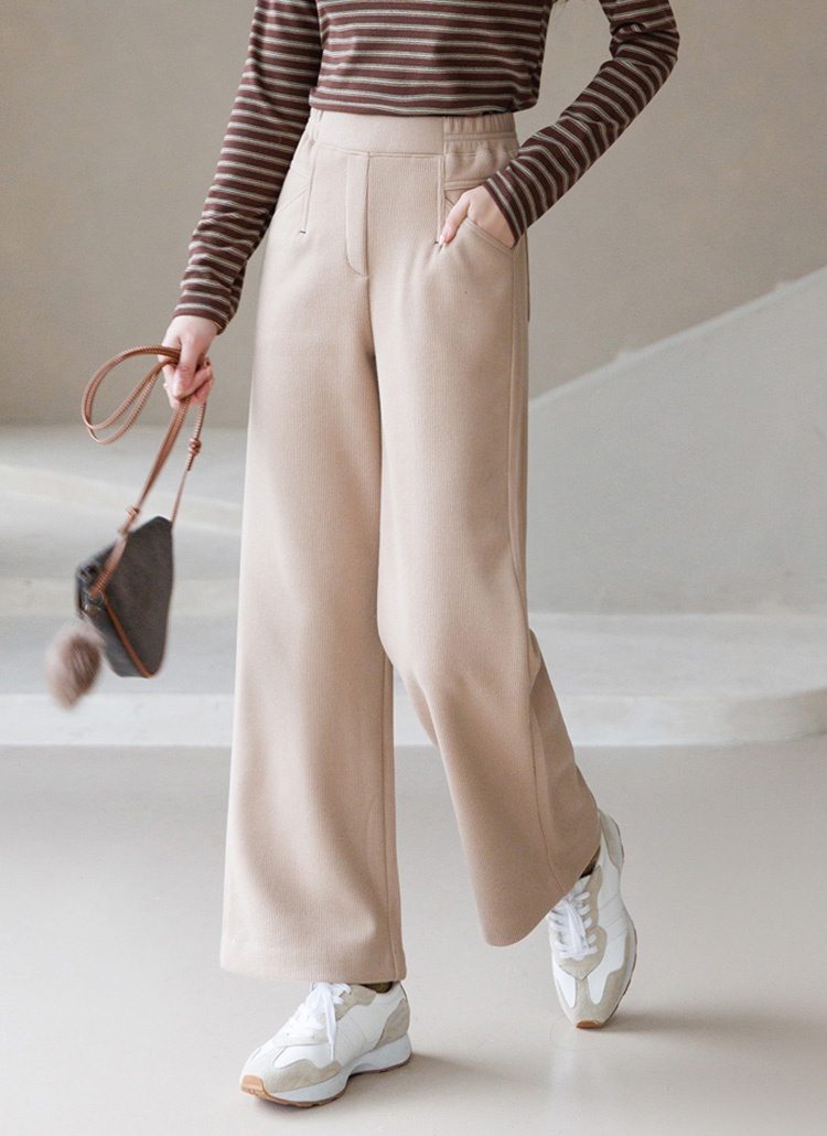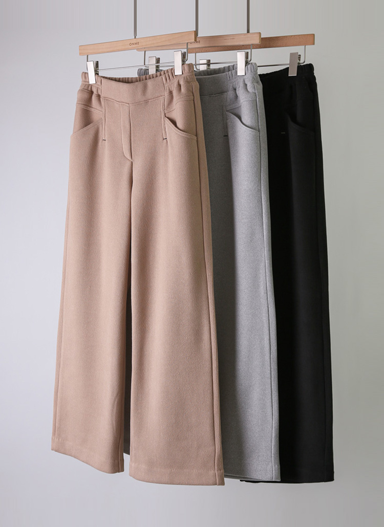 도톰한 골지 텍스쳐가 포근함을 더해주는 세미 와이드 팬츠에요