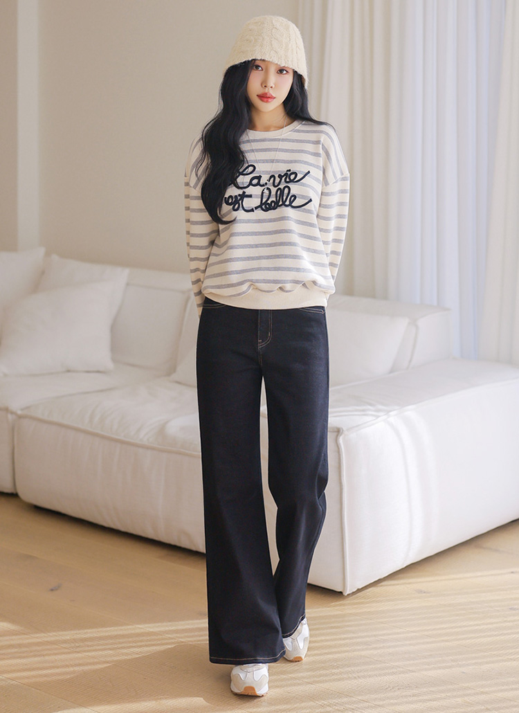 겨울 시즌에도 따뜻하게 착용하기 좋은 생지 데님 팬츠예요 :)