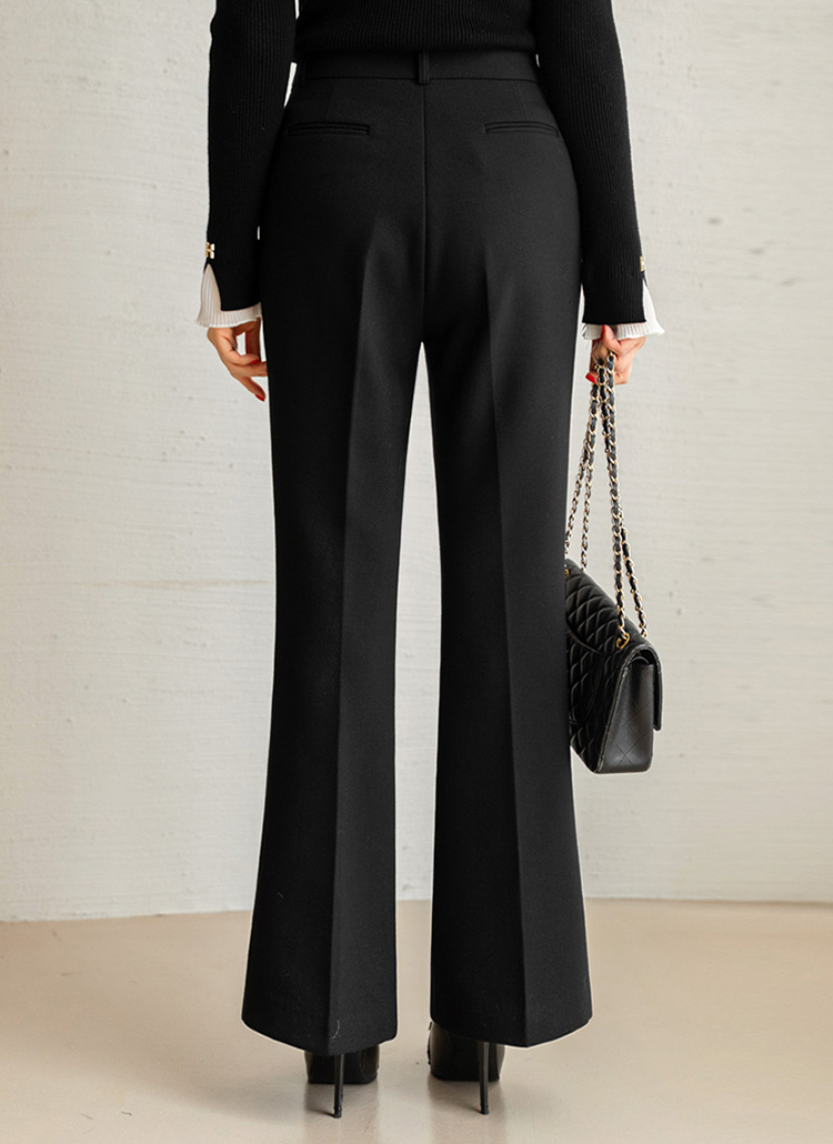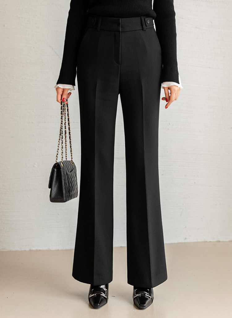 실루엣을 한층 더 정제된 클래식 무드로 완성해주는 부츠컷 슬랙스에요
