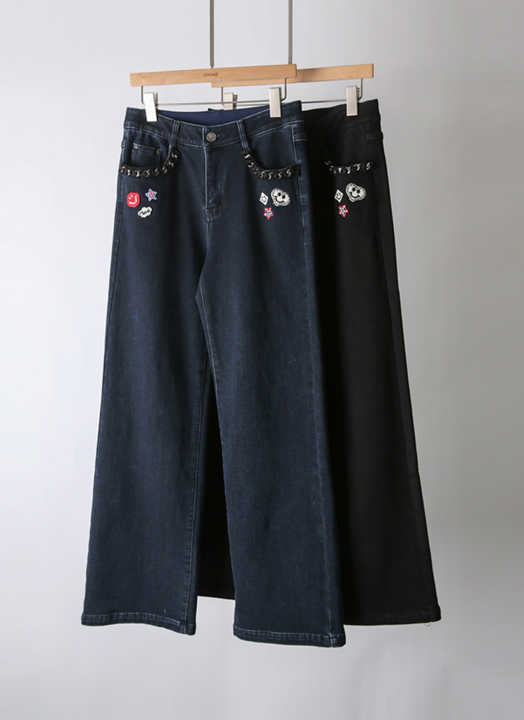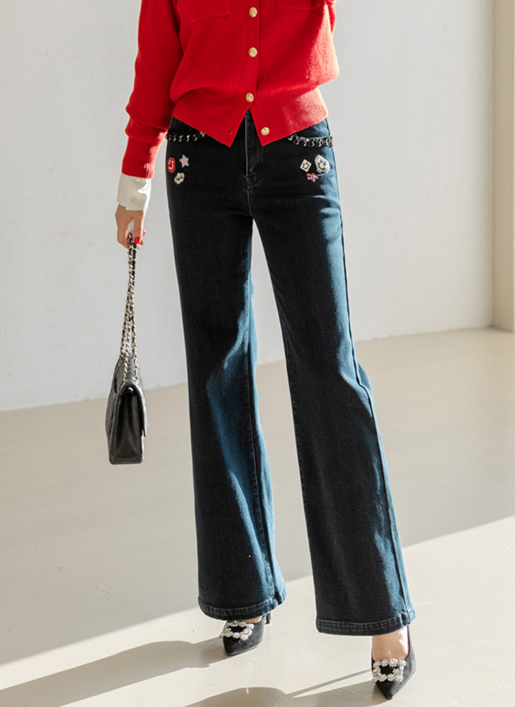 포켓 라인을 따라 섬세하게 장식된 체인 디테일이 시크한 반전을 더해