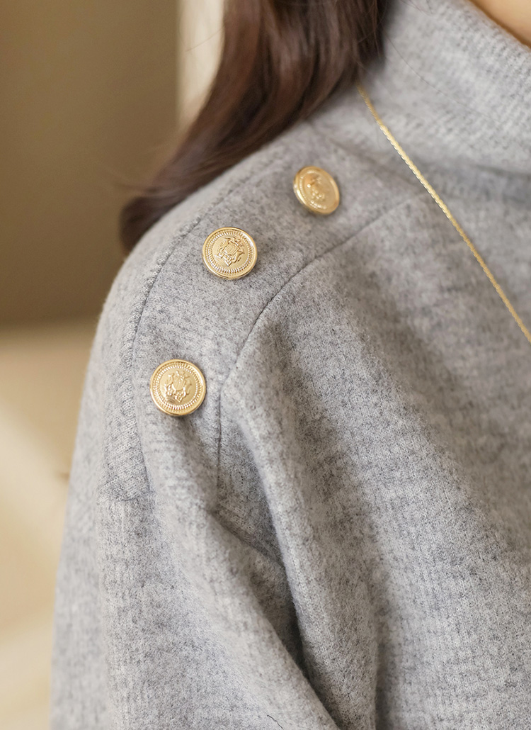 어깨에 더해진 골드 컬러 견장 버튼이 고급스러운 포인트가 되어줘요